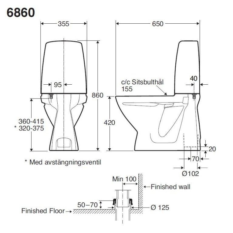 Nja, det står att det är 70 mm från centrum till bakkanten av stolen. Sen står det även att det ska vara 100 mm från centrum på avloppet till väggen.vojma skrev: