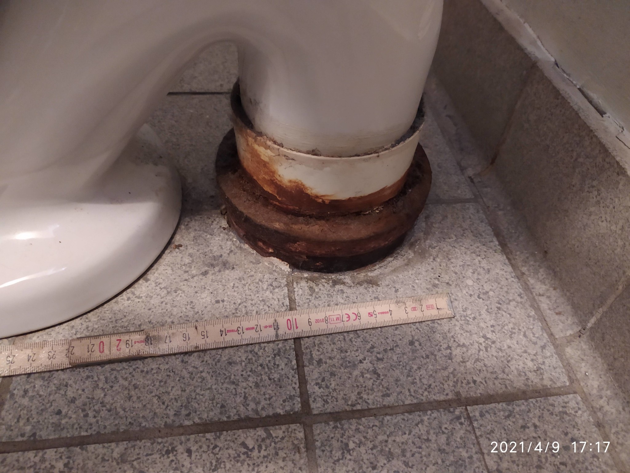 Avloppet går ner i golvet och den gamla har såvitt jag kan förstå, ett öppet s-lås.
