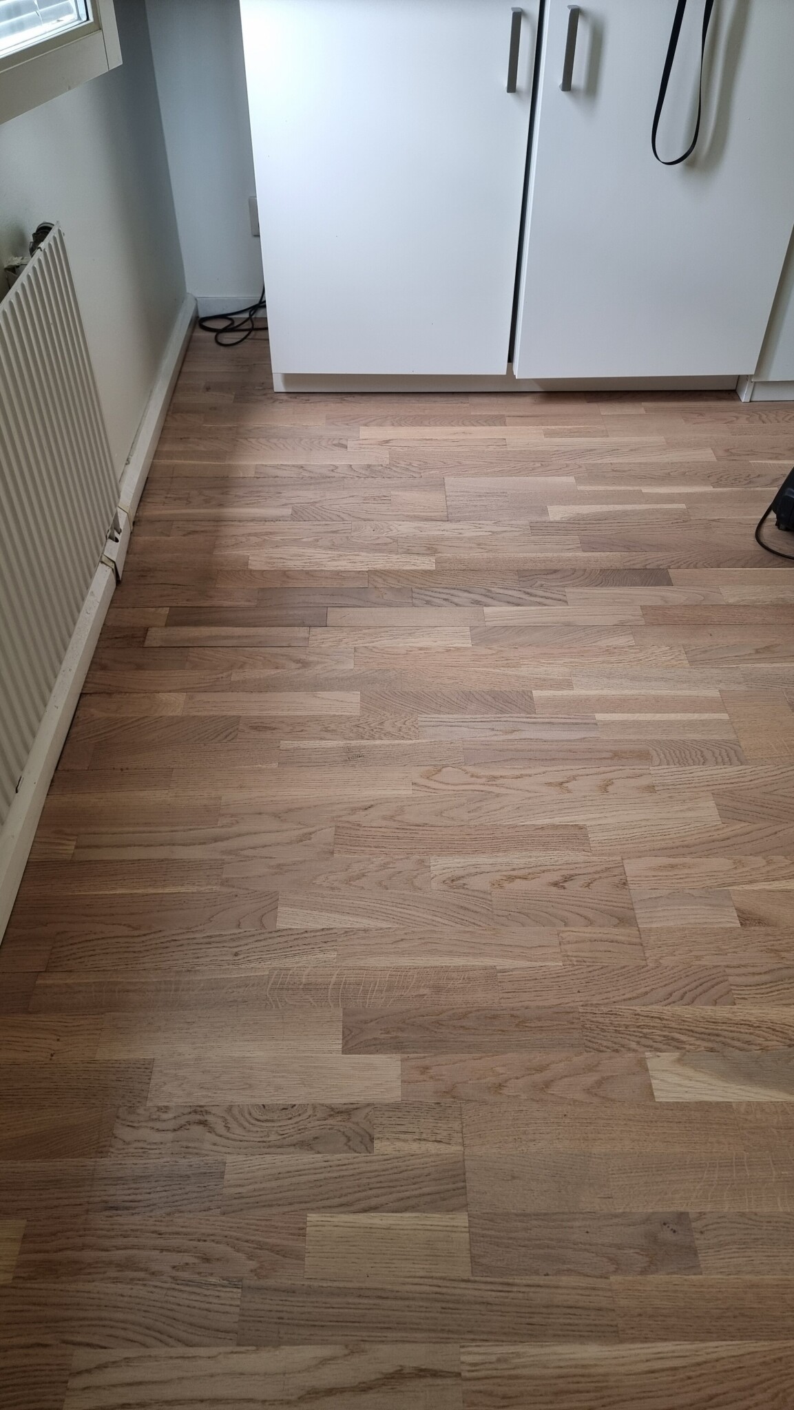 Skulle du ens hitta exakt samma golv så skulle det sticka ut om du la in ett par nya, lägg ett helt nytt blir både bättre och snyggare.