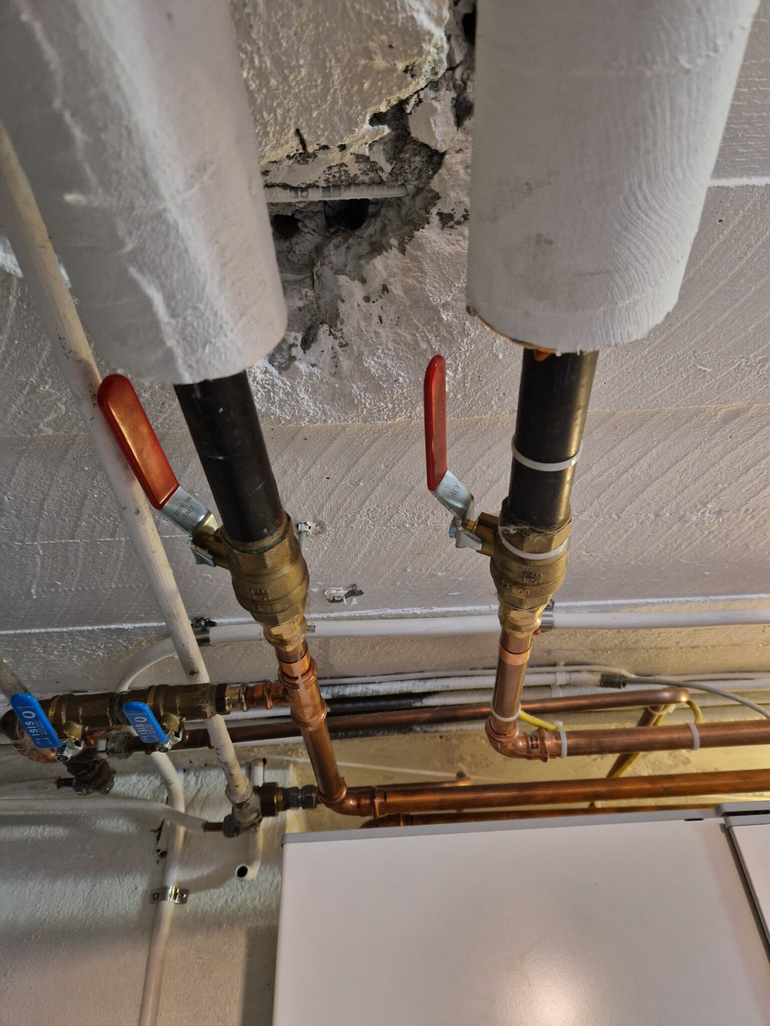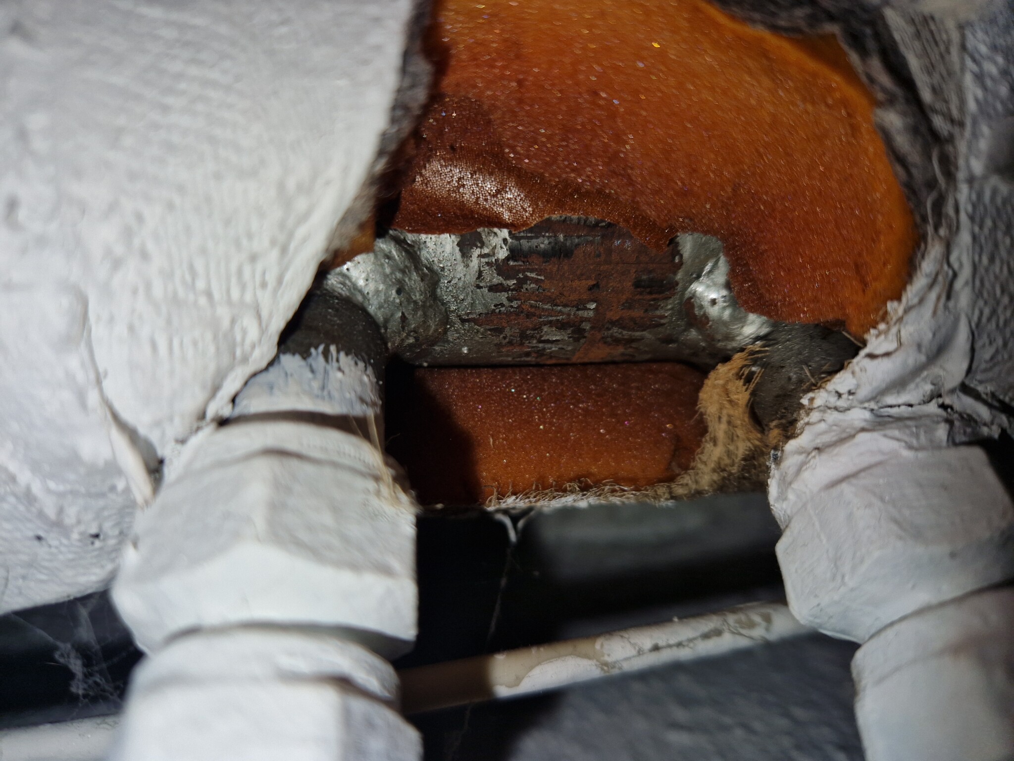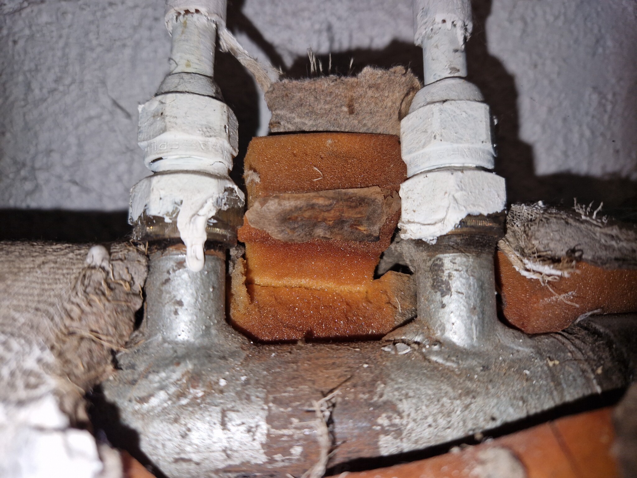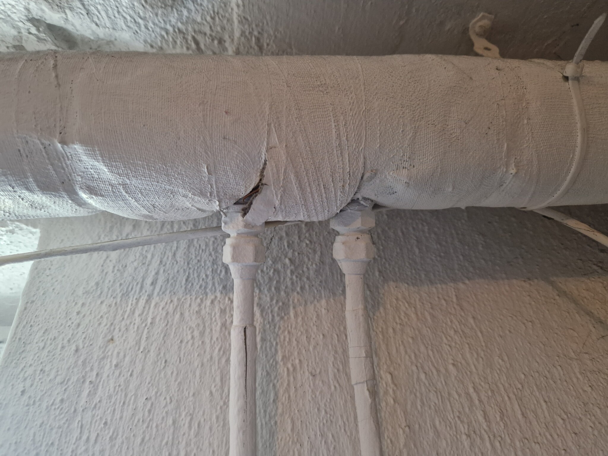 Hur är rören kopplade på bild 4 och 5 i källaren, du får öppna på isoleringen. Skär med en gammal förskärare och frigör inkopplingen. Gammal installation, men det är nog ingen asbets på dom ställena. Bara raka isoleringen. Asbets kan finnas på 90 graders vinklar och T-kopplingar, men inte säkert.M malinli77 skrev: