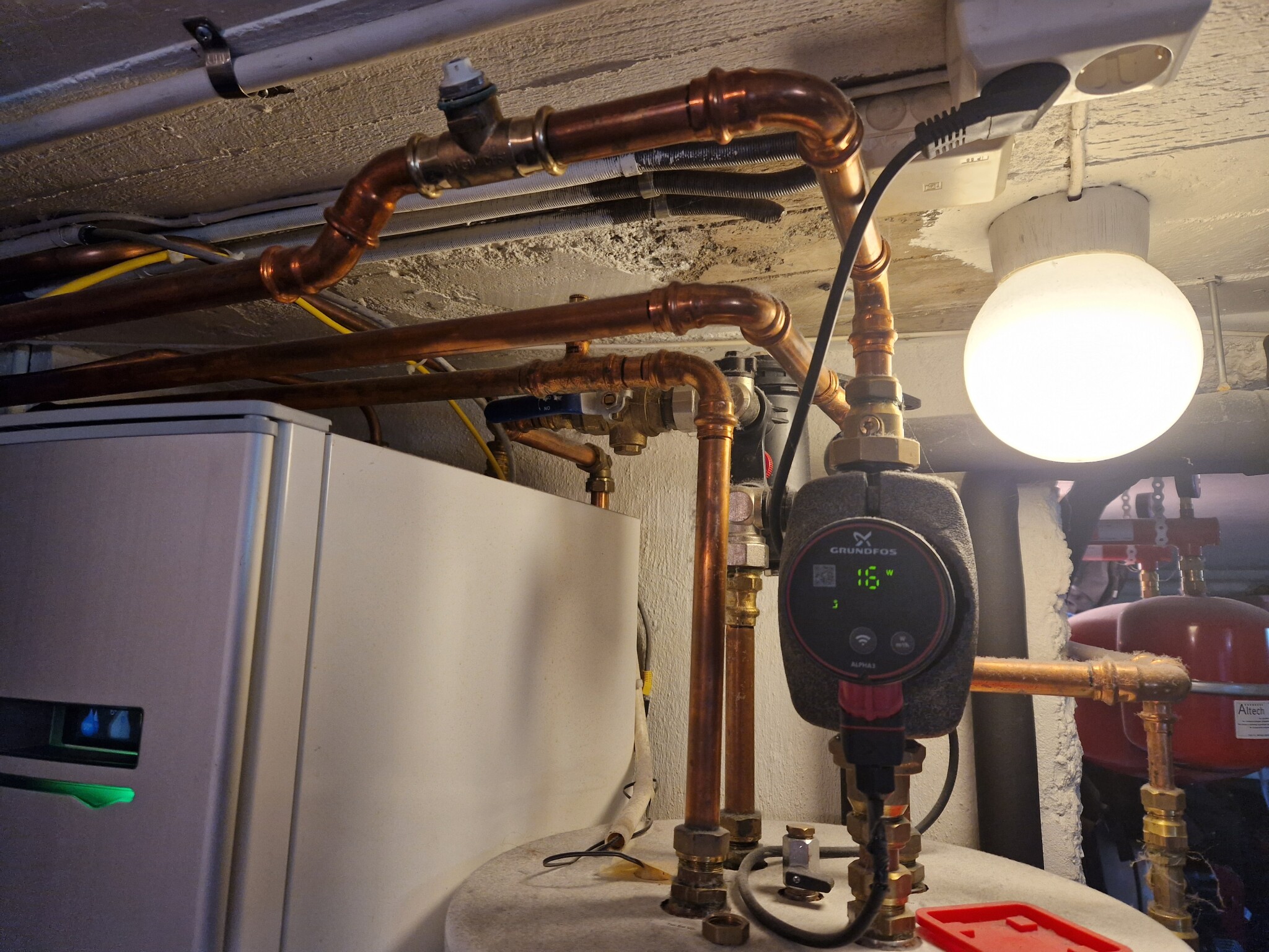Vi hadde tidigare oljepanna och element i ettrörssystem. Oljepannan böts ut ned en Nibe bergvärmepump i 2018. Samtidigt blev det satt in ett element i ett rum som inte tidigare hadde haft element. Vi fick stora problem med att det inte blev värme i elementet, varmvattnet passerade bara förbi utan att gå genom elementet. Det slutade med att rörmokare satt in en ventil mellan "inn och ut" från elementet, och på det viset fick vi strypt vattnet och tvunget det genom elementet.