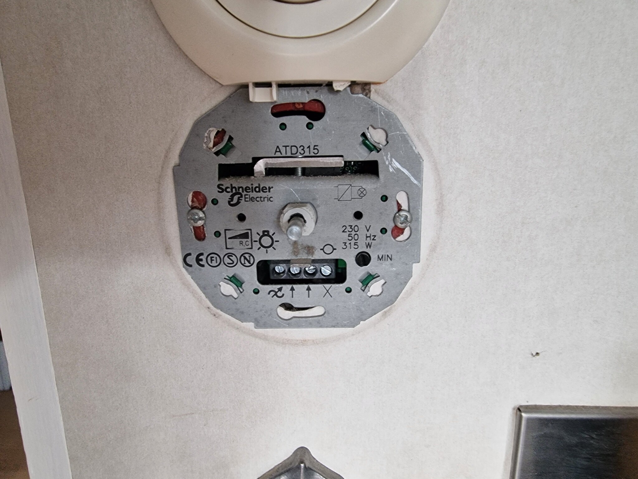 Bifogar bilder på dimmer och transformatorn. Transformatorn är kopplad via stickkontakt ovanför skåpen, där uttaget är draget från dimmern. Vet inte om den beskrivningen är förståeligt?Ossian K Olsson skrev: