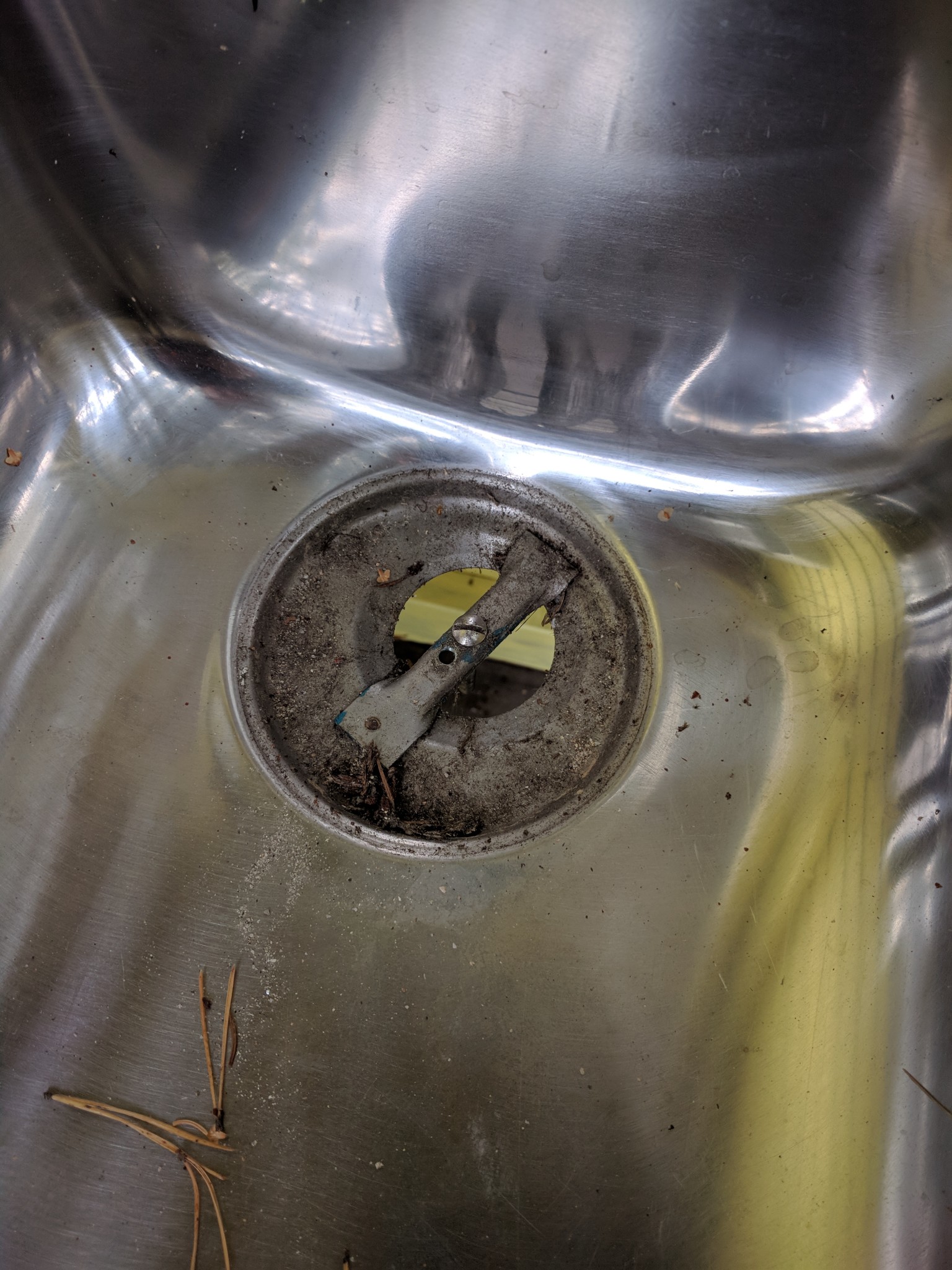 Det är mittskruven som hållit fast anslutningen på vattenlås mot diskbänken.