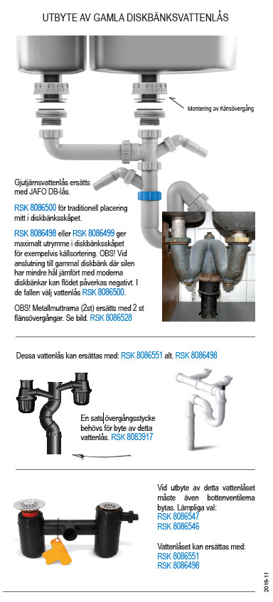 Ska byta vattenlås på en diskbänk i mina föräldrars sommarstuga. Det gamla är ett Olofström, har jag för mig. Vad för vattenlås kan jag köpa som passar ihop med anslutningen på diskbänken?