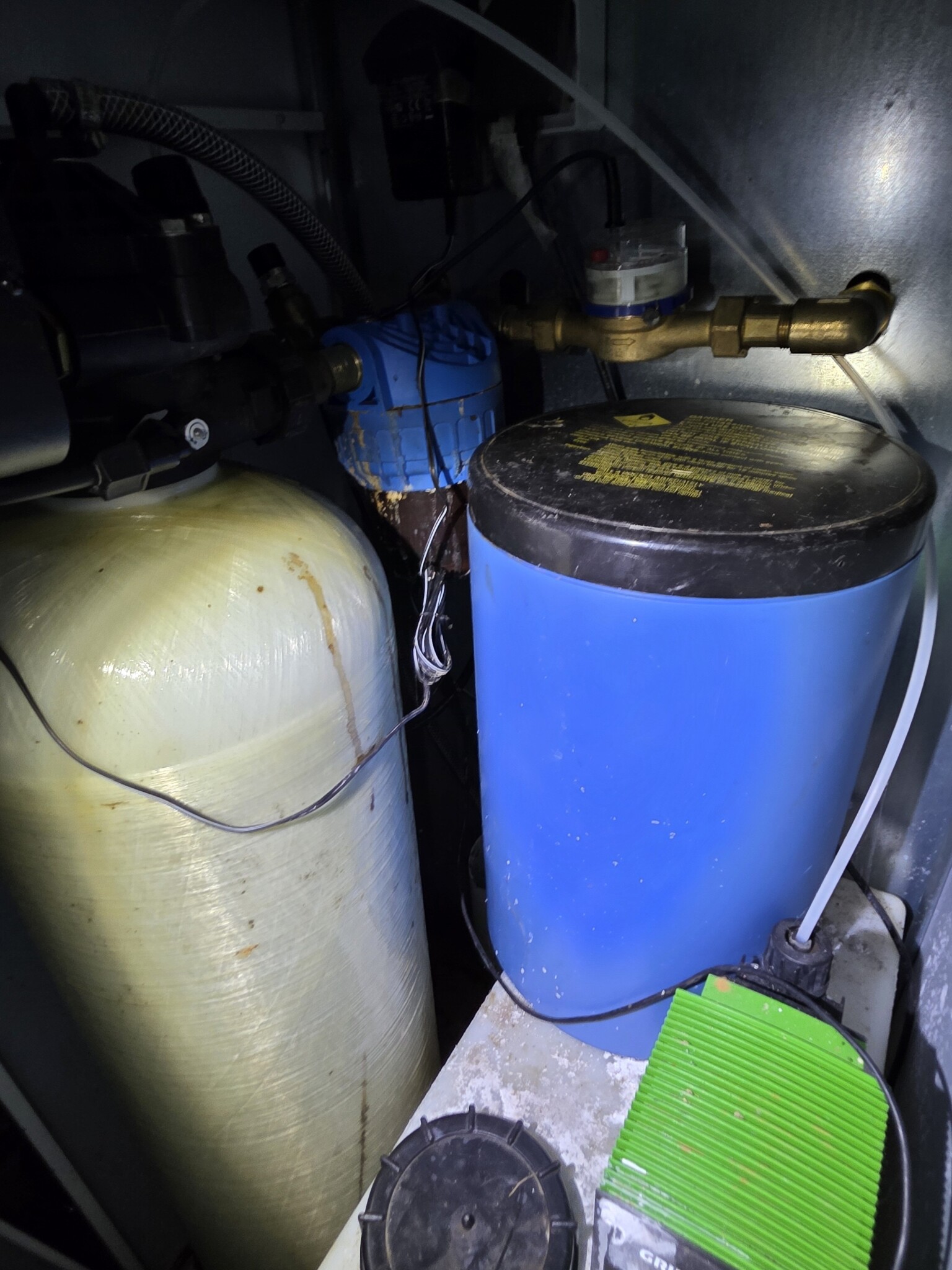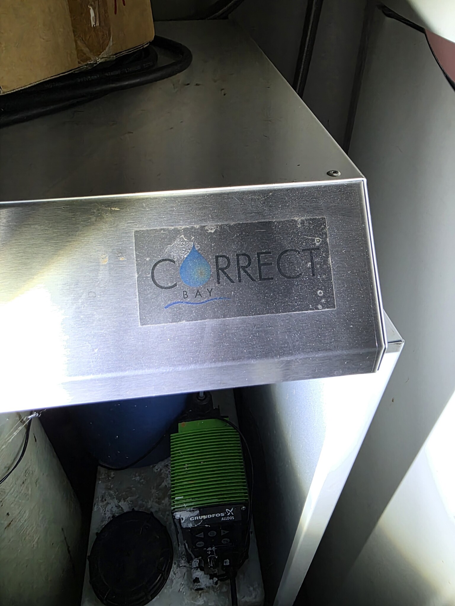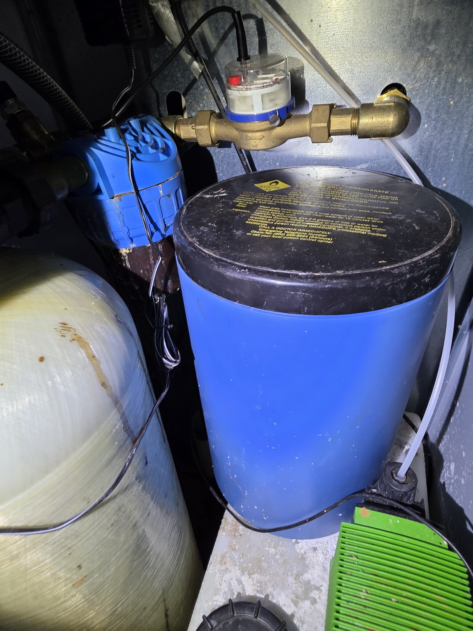 Systemet som sitter idag är från 2007, och kommer från Correct Vattenrening (som gick i konkurs 2021, så där kan man inte få någon hjälp). Idag fyller man på pH-höjande medel, samt kaliumpermanganat. Eftersom pH-värdet är lite lågt bör man väl öka den dosen lite?