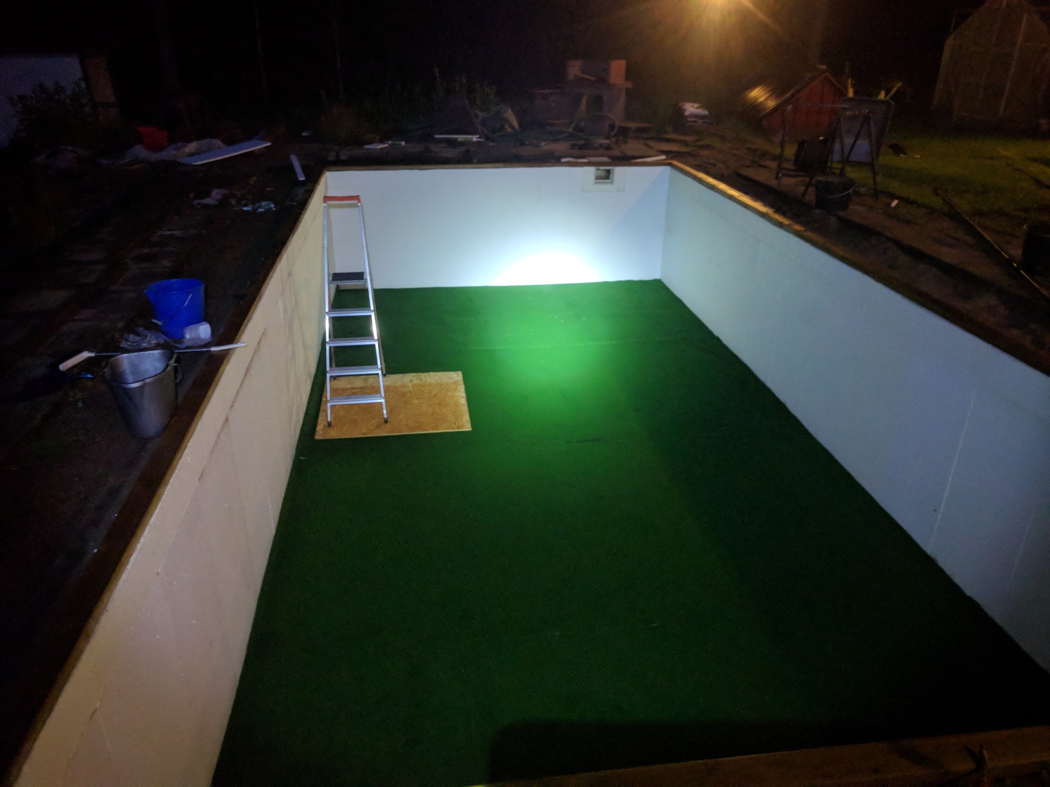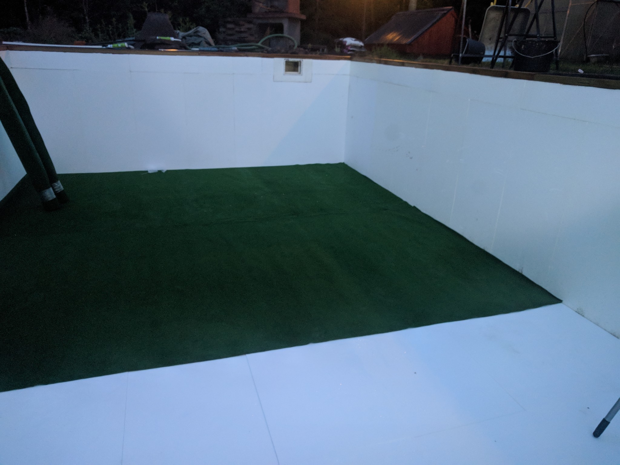 Däremot låg mattorna kvar på sin plats hela tiden när vi bråkade ut linern. (Fyller för tillfället, ca 57 cm fyllt än, ska fixa lite mer bilder snart)
