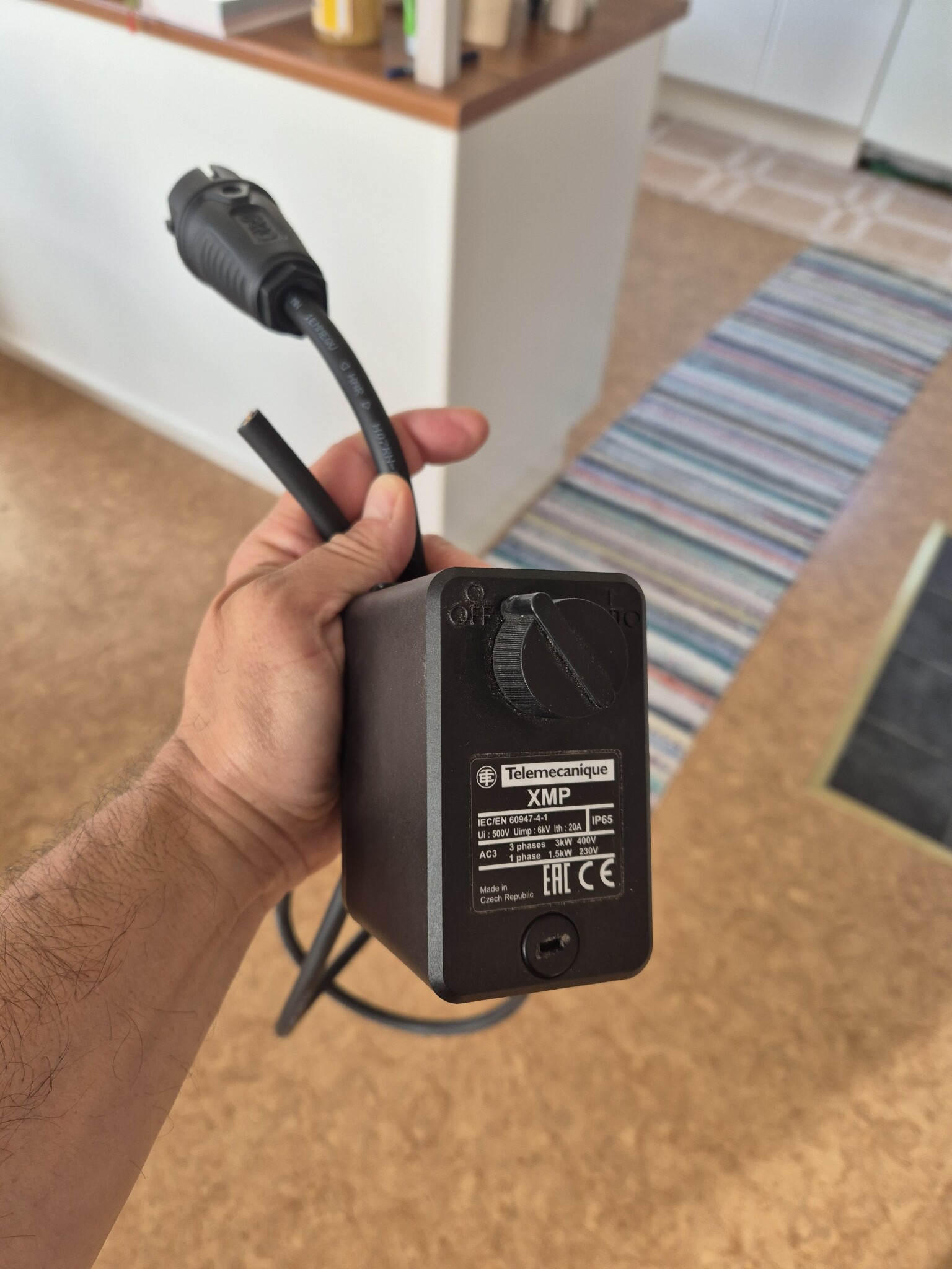 Edit Verkar som att den du har, ( finns inte längre) har inbyggd presstostat för start/stopp och då för att sätta dit en annan utan det. Så måste du ha sepparat start/stopp med en tryckvakt.