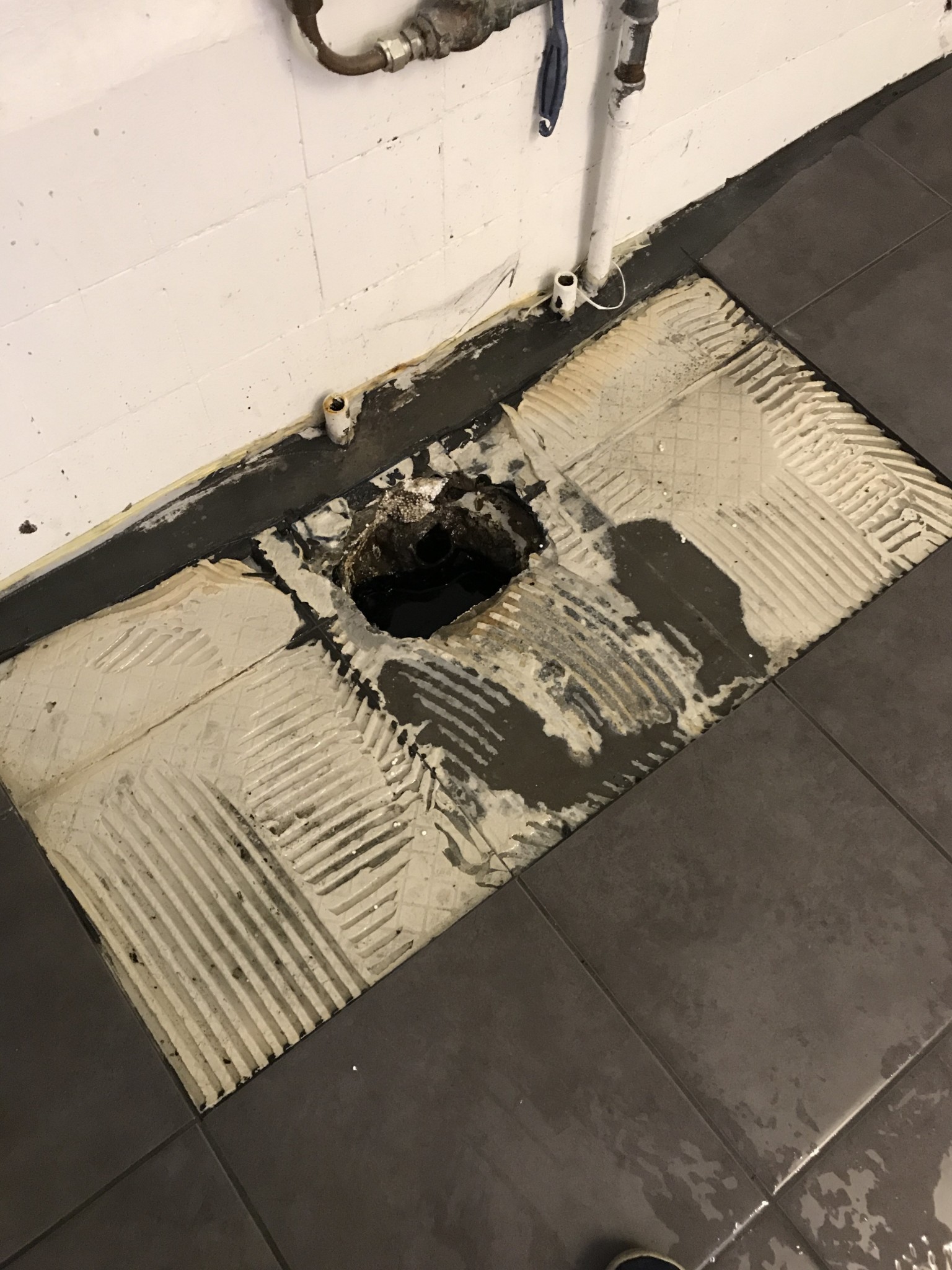 Vattenskadad tvättstuga, hur göra med golvbrunn och fall?