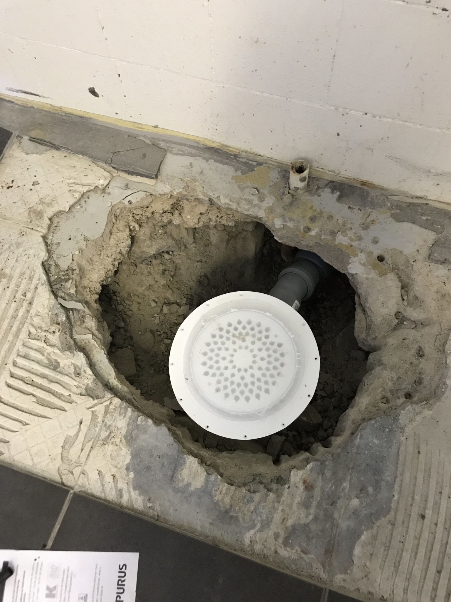 Har äntligen tagit tag i problemet att golvbrunnen i tvättstugan saknar vattenlås (trasig gammal gjutjärnsbrunn)