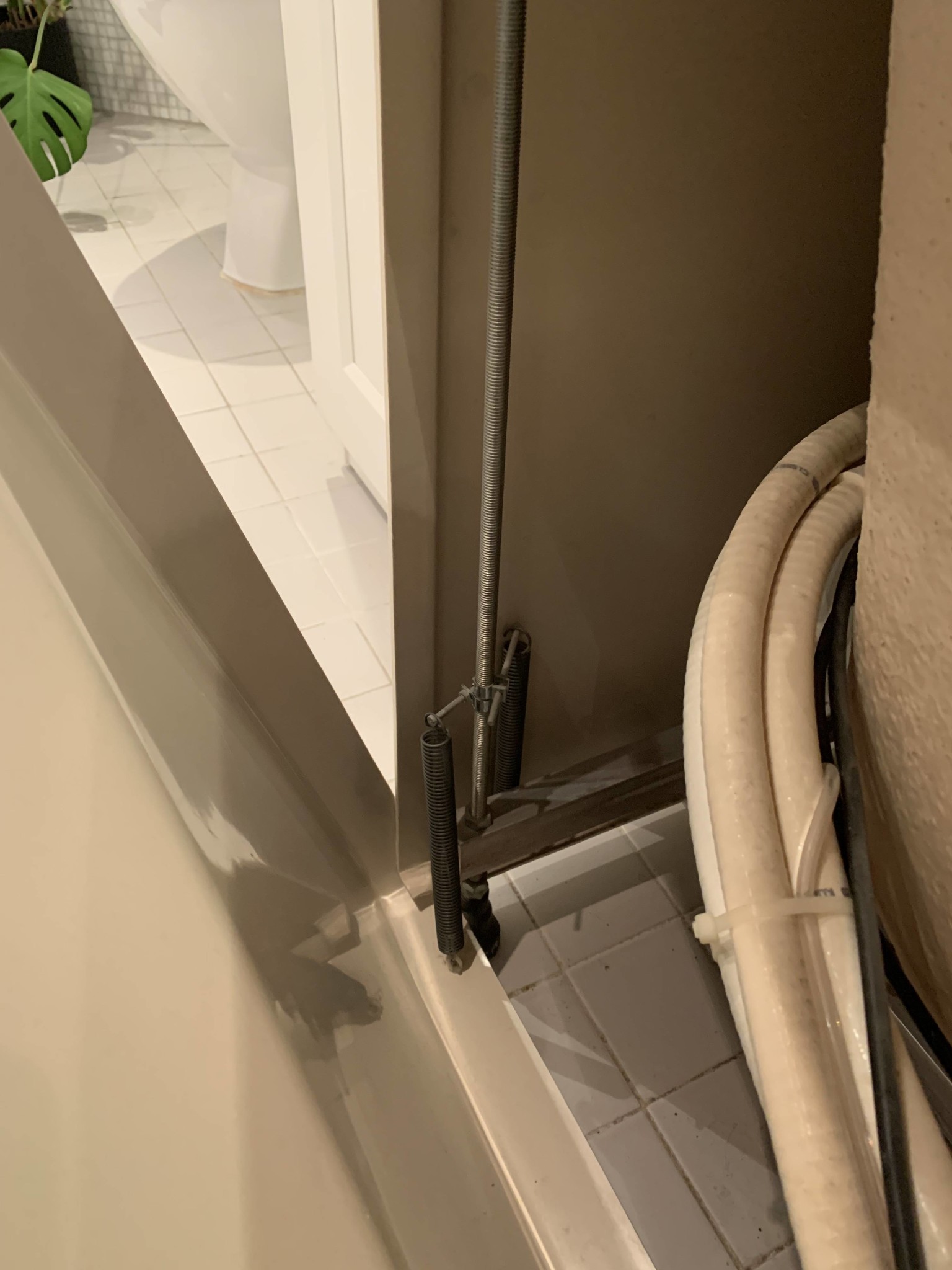 inte exakt samma modell. Men min hänger man upp på fjädrar nertill och sedan håller upp fronten under framkanten. Svårt att se om du har samma konstruktion. Se min bild.