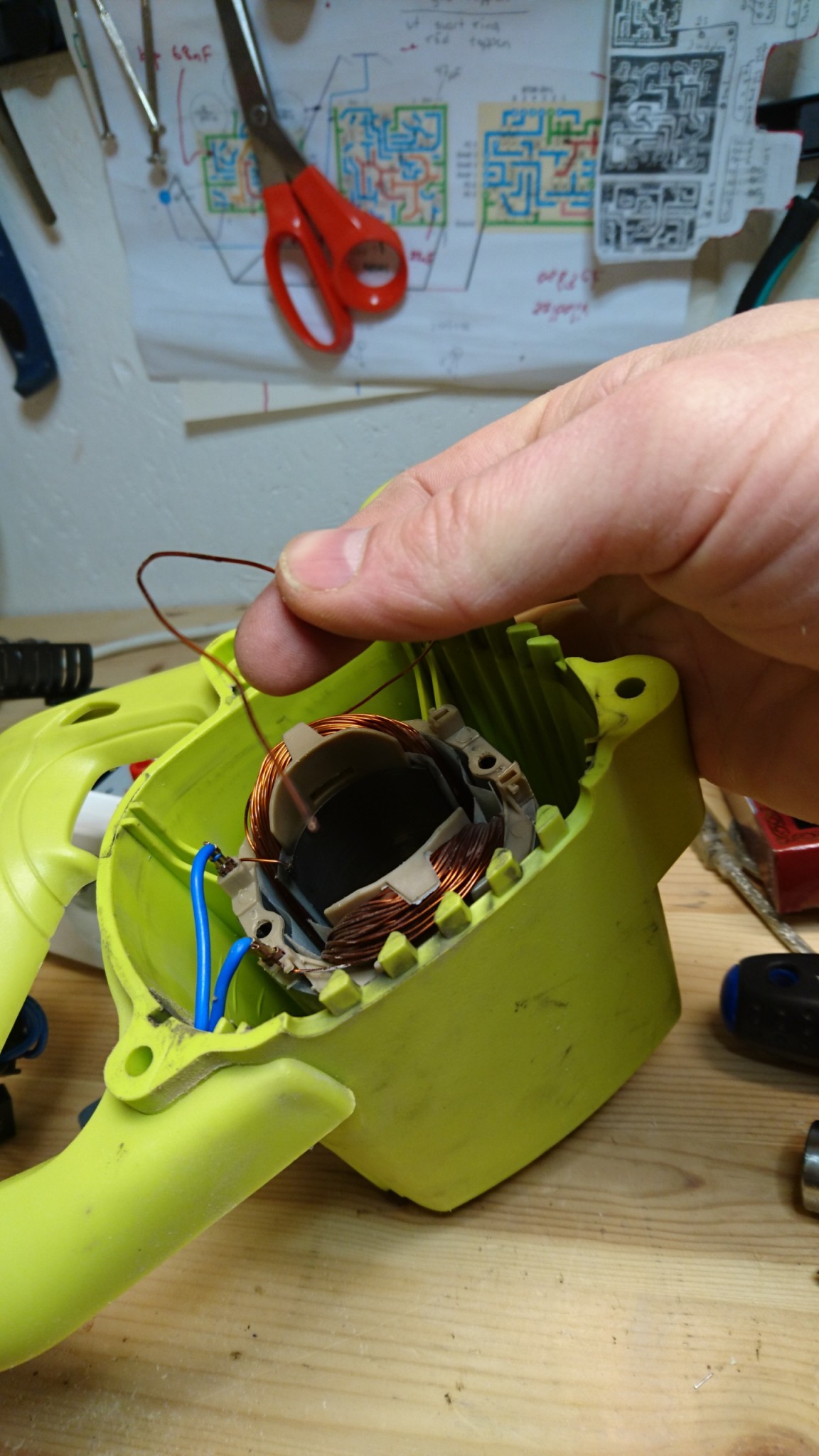 Efterföljaren till din såg finns på lager på netonnet i örebro för 1300, inkl styrskena. Sågen du har kan du ha att meka med och lära dig om allströmsmotorer och elverktyg i allmänhet. Skulle du få snurr på den så småningom så kan du alltid sälja den, eller ha som reserv.