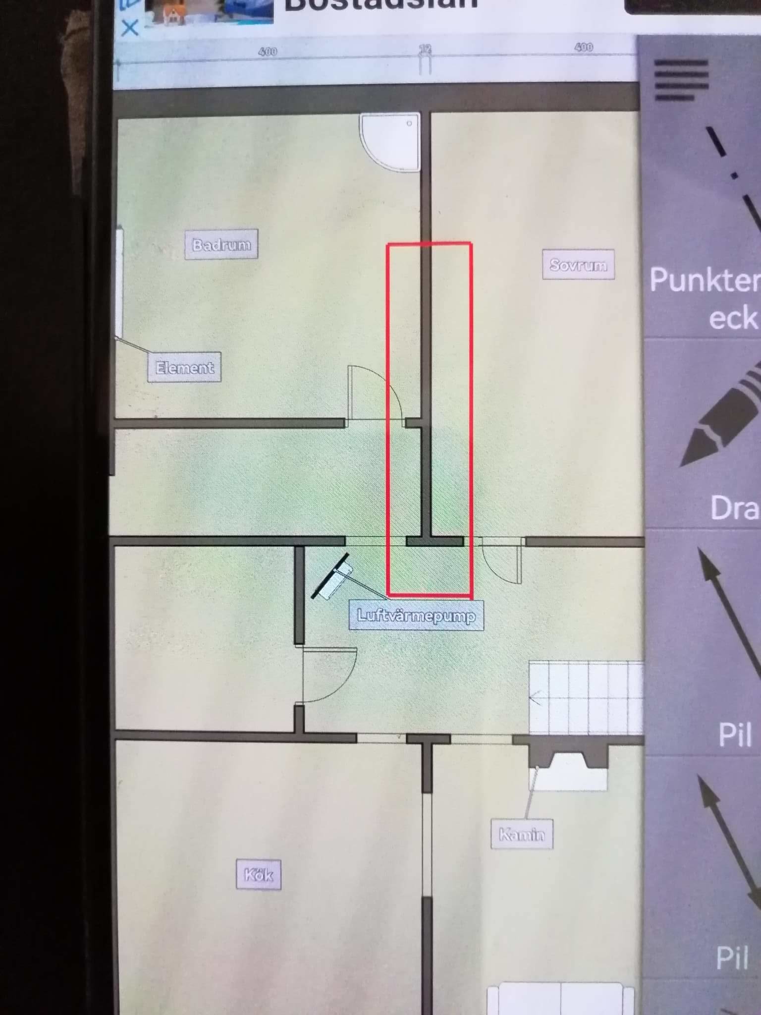 Som ni ser enligt bild så sitter vår värmepump lite halvdumt för den värmer inte upp badrummet eller ett sovrum.