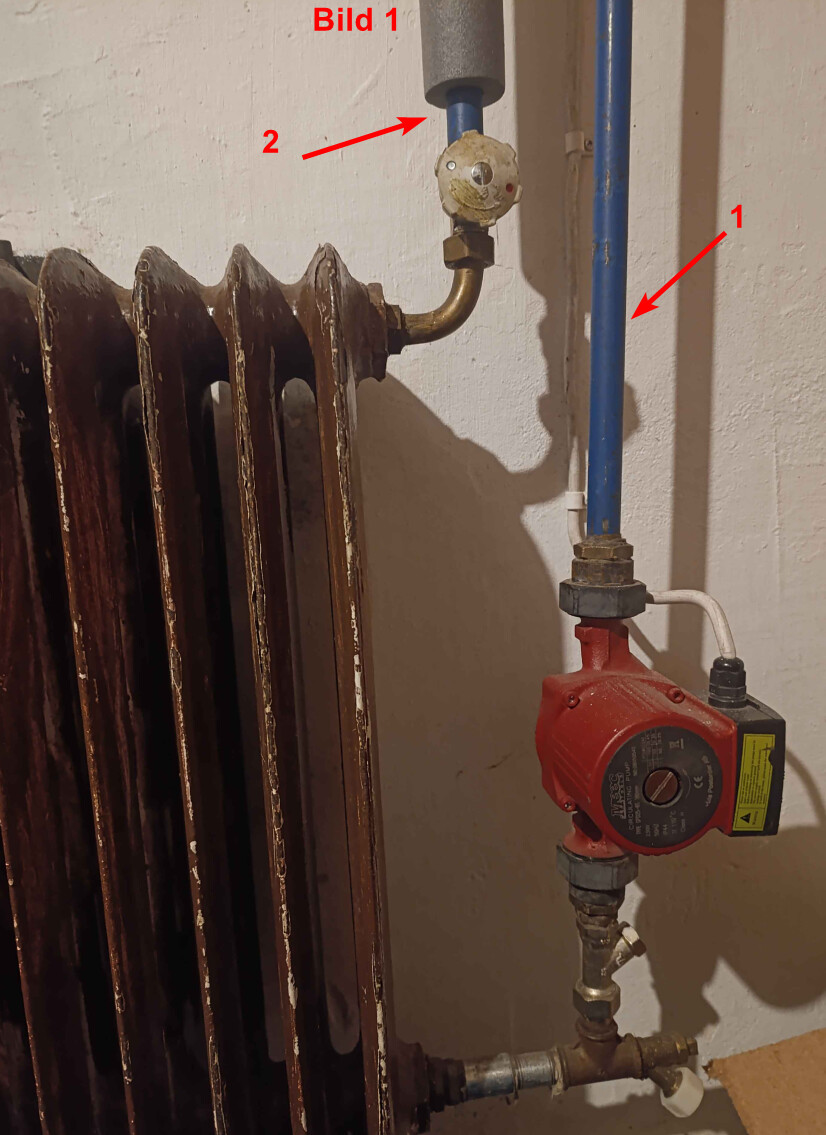 Hej! Funderar kring cikulationspumpen som sitter vid elementet här. Om jag stryper elementet på rör 2 vilket jag gissar är inloppet på elementet, kan jag då stänga av cirkulationspumpen som sitter på rör 1. Kan cirkulationspumpen vara på fast jag stryper elementet? Eller kan det bilda övertryck på något sätt.