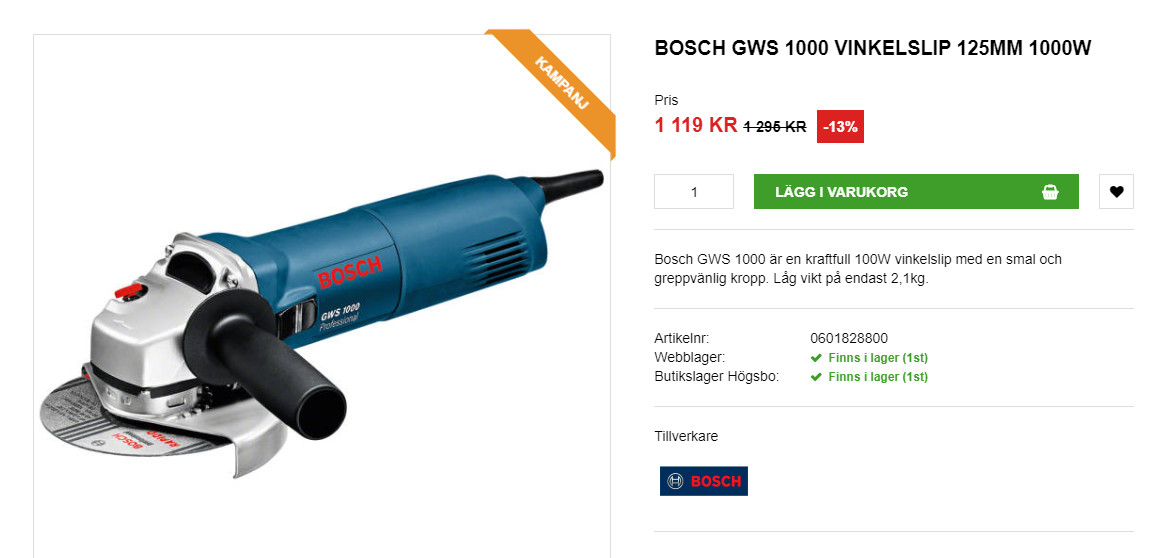 Ordinarie pris hos Clas och kampanj hos Toolab.