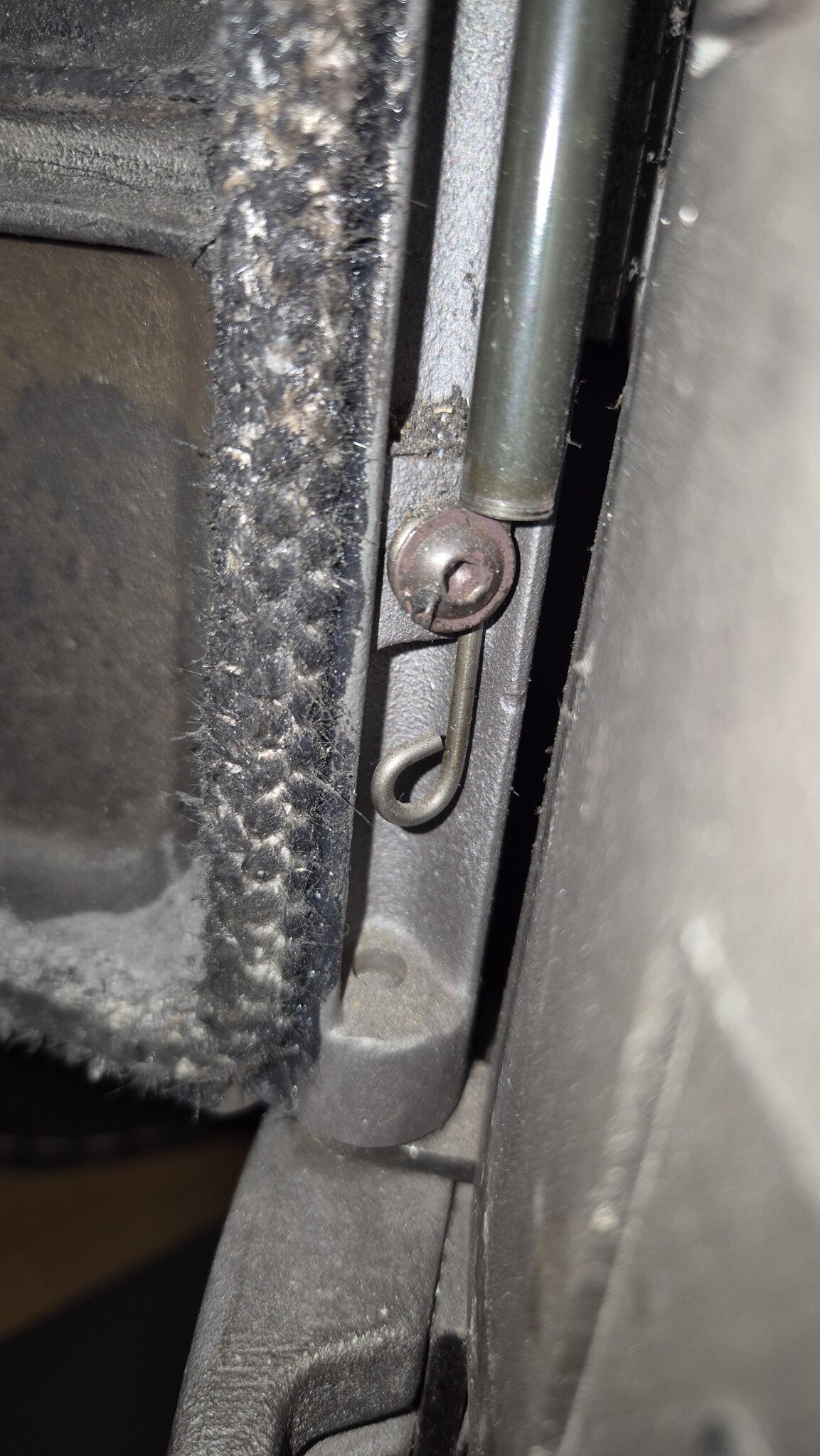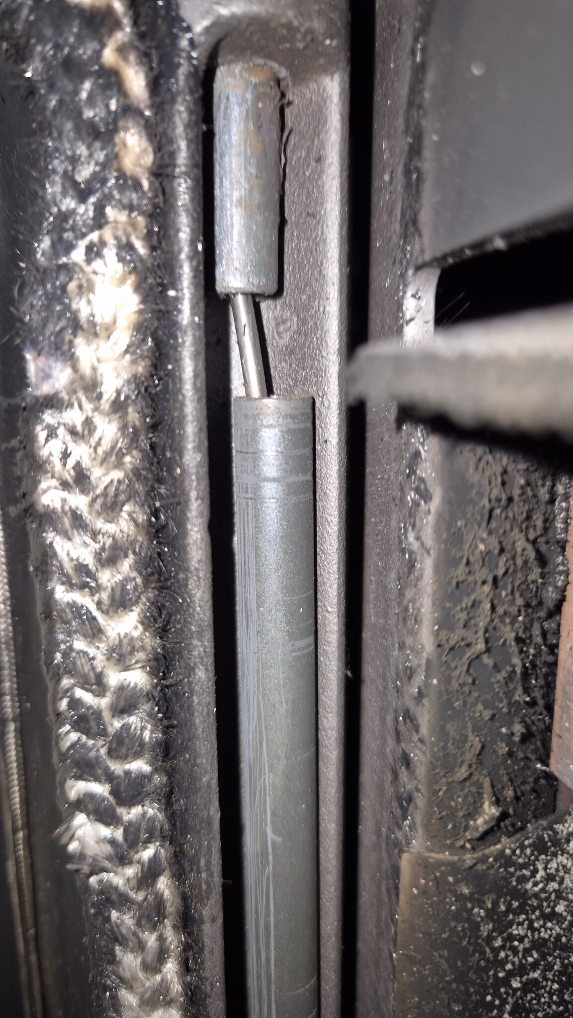 Edit : vill man ta bort den, så sitter den med 1 insexskruv, men var försiktig, då fjädern ligger i spänn när luckan är öppen, så håll emot med t.ex. en mejsel i den fria öglan.