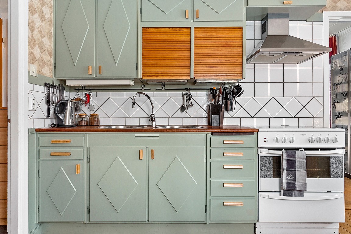 Härliga kombinationer av färger och material, läcker utformning på luckor och handtag, passande kakelsättning, etc.