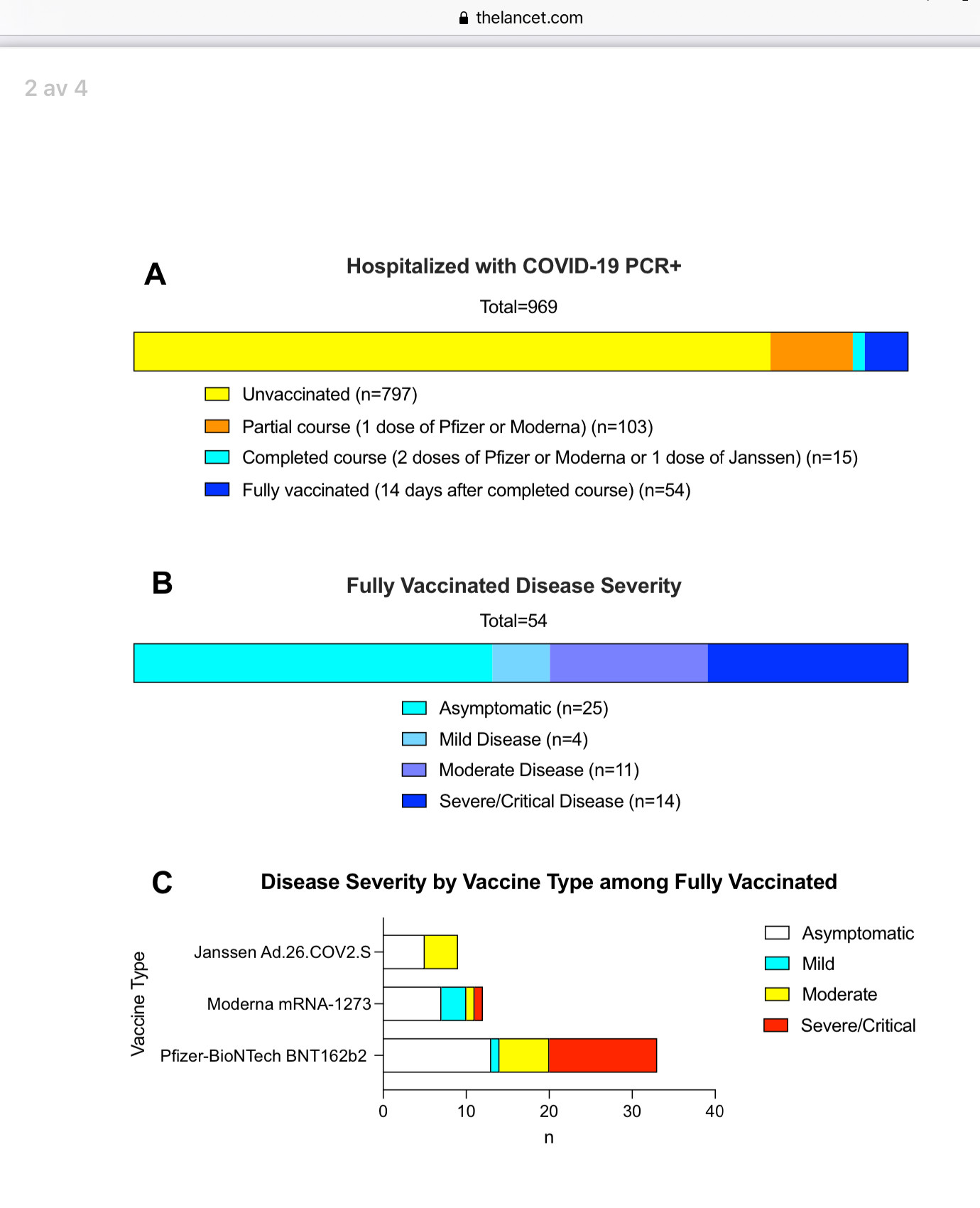 797 var ovaccinerade. Bland de fullvaccinerade var 25 asymptomatiska! Det fanns alltså någon annan anledning till att de hamnade på sjukhus.