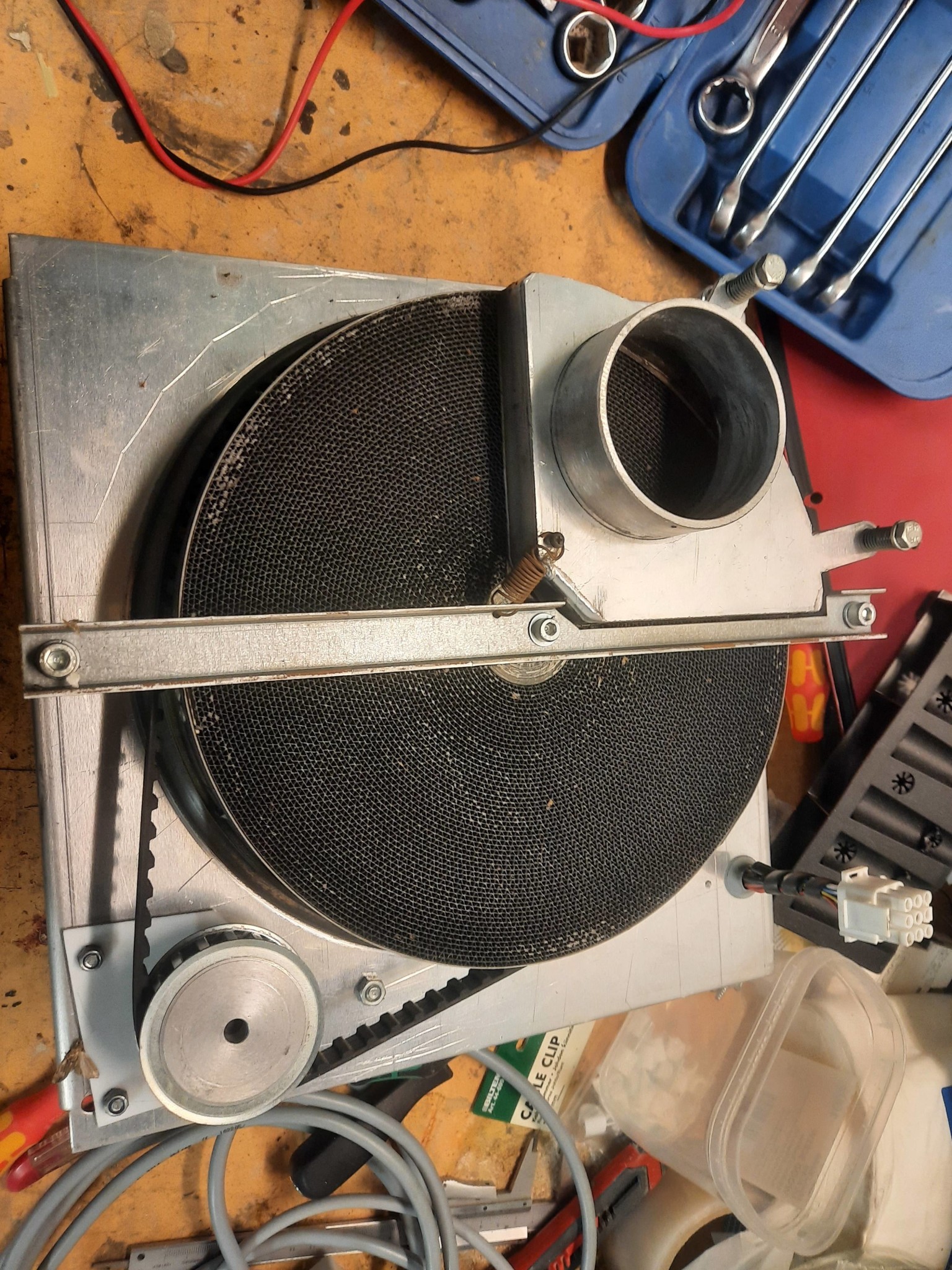 Rotorn ser ut att rotera som den ska men filtret behöver bytas och luften som kommer ut känns inte "varm och fuktig" (som manualen säger) trots att indikatorlampan säger att avfuktning är igång. Jag testade vrida upp hygrostaten att tillåta högre fuktighet - då slocknade indikatorlampan. Fuktigheten är uppmätt för hög, så inget tvivel om den saken.