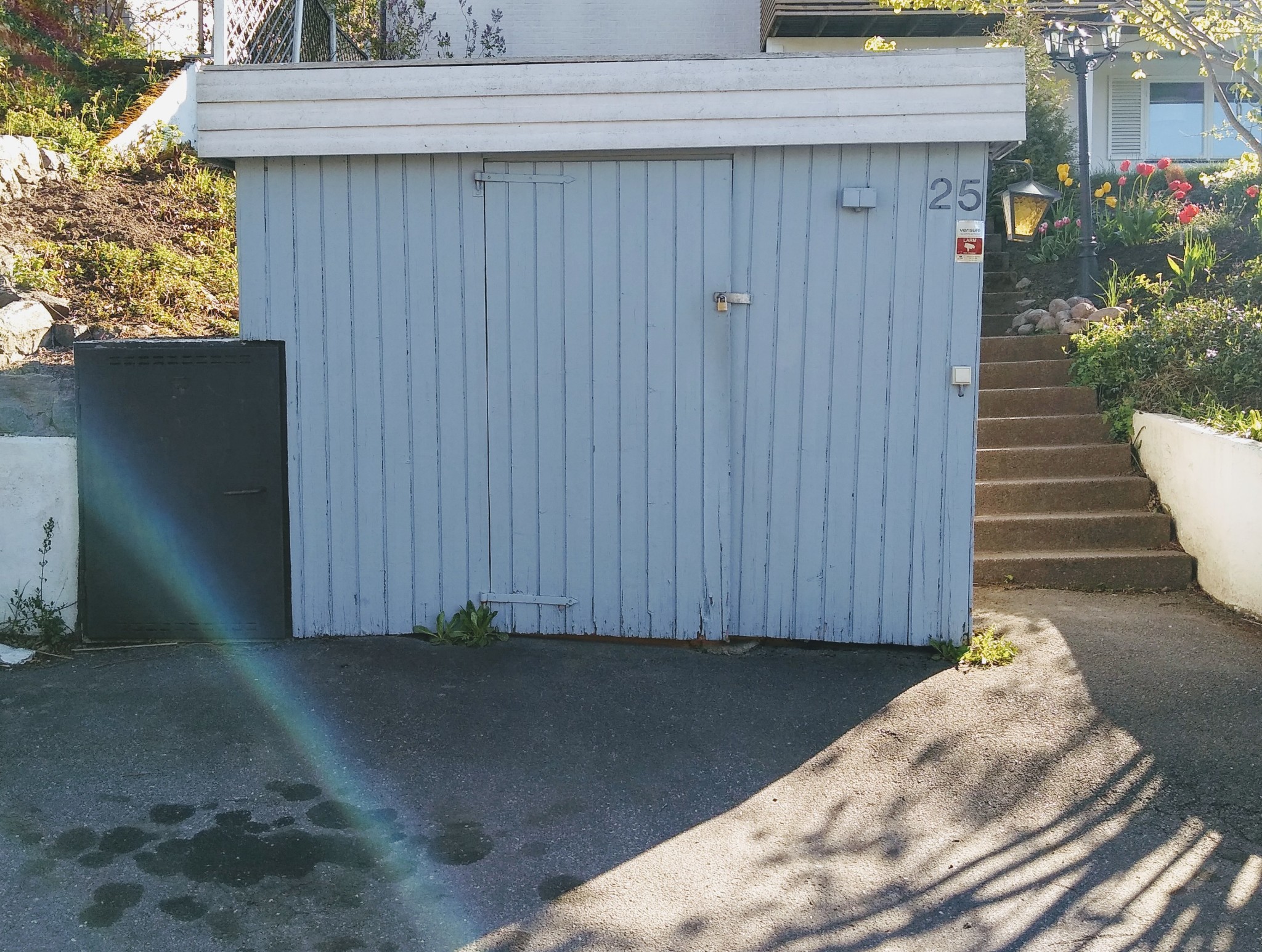 2) Riva ned allt inkl sockel. Ta in någon som kan göra om markarbetet så att det blir plant. Kanske asfaltera om hela uppfarten på samma gång (cirka 45 m² tot inkl där förrådet står)? Gräva ur slänten på baksidan 1 m för att sen kunna bygga förrådet lite större. Kanske köpa en byggsats för att underlätta bygget och kunna göra det själva.
