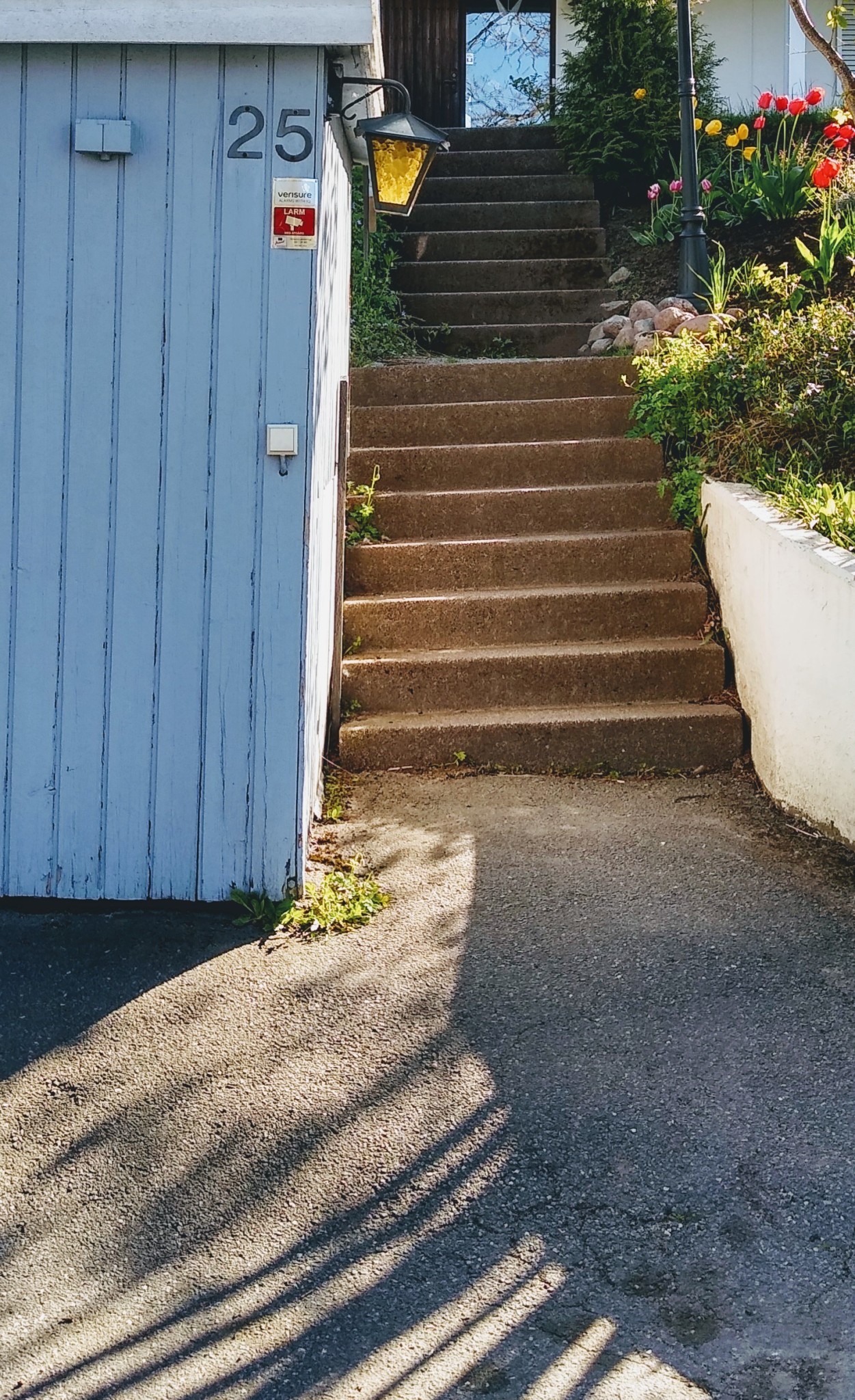 Ett ytterligare problem är betongtrappan bredvid. Gjuten i ett stycke och lutar även den ganska rejält. Om man lyckas gräva ut på vänster sida (förrådet sträcker sig ung till mitten av trappan) och framför (ta bort asfalten först såklart), skulle man kunna lyfta den med hjälp av domkrafter??