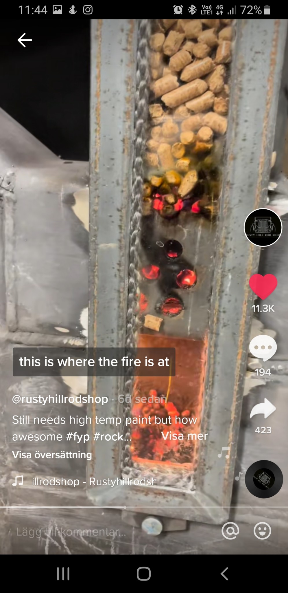 Då brann det bra. Nackdelen var att veden inte får vara för liten för att inte genast rasa igenom. Pellets går förstås inte alls.