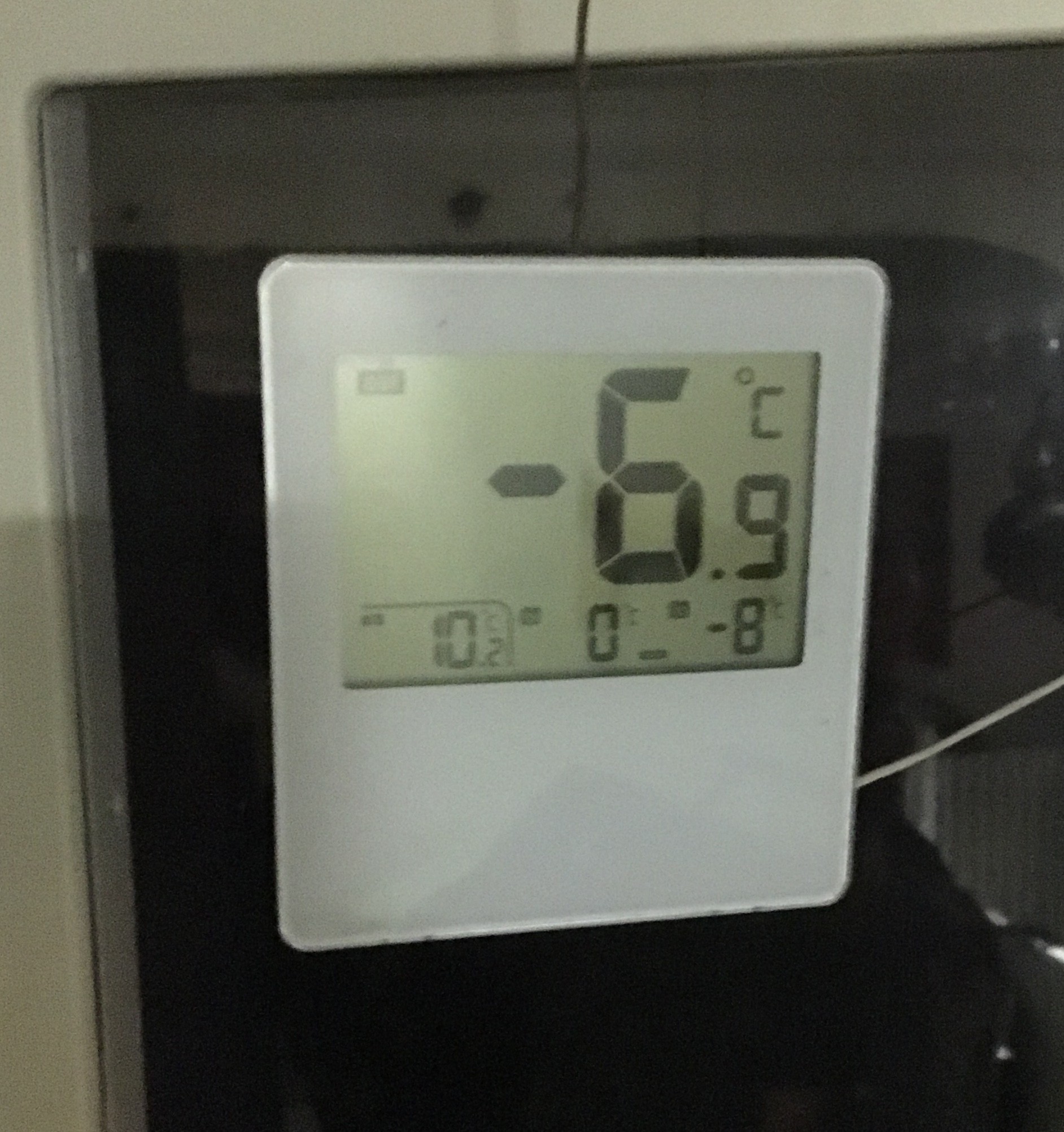 Lite oväntat att utomhustemperaturen gick ner till åtta minus under natten. Hade jag eldat lite mer i går kväll och ställt upp termostaterna på frostvakterna hade det sett bättre ut. Vill dock ogärna peta på termostaterna. Meningen är inte att elen skall vara mer än grundvärme när jag inte är i båten.