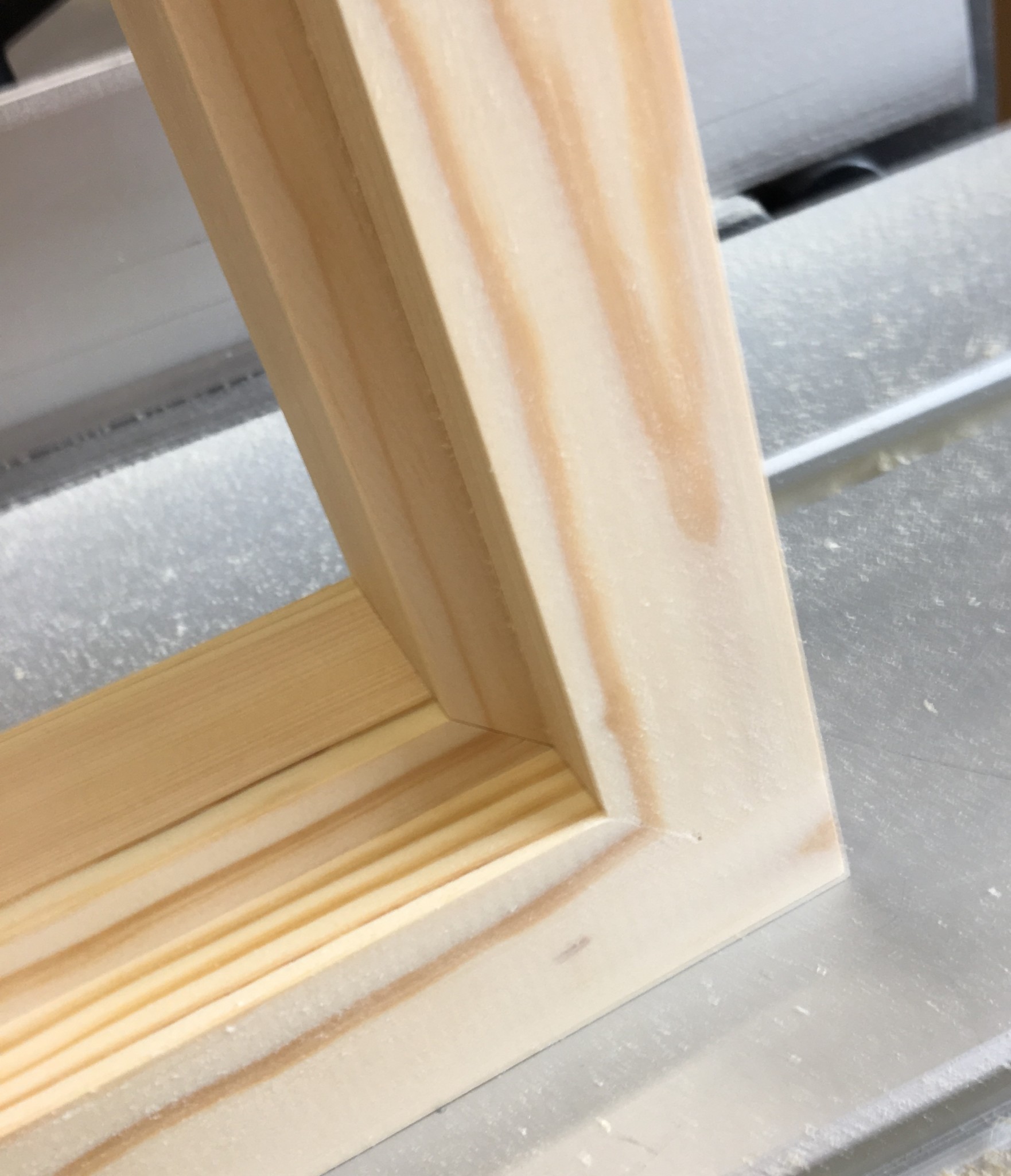 Det är djup fals för innerbåge på insidan. Även sågspåret för tätlisten blir gerat när jag gör på det här sättet.