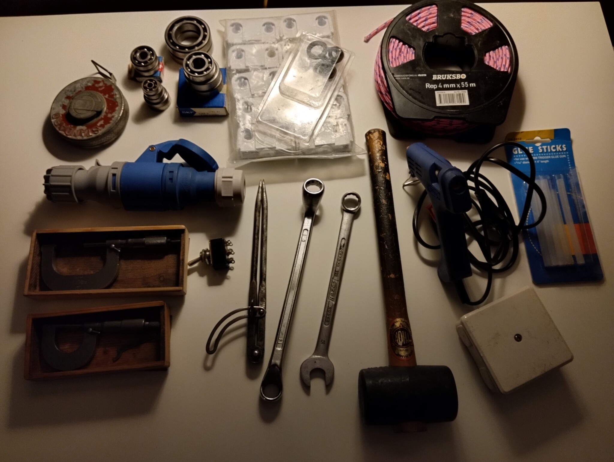 Lokala sterbhus-loppisen hade öppet i helgen, så jag blev 250 kr fattigare. Förutom en 5:e (?) limpistol (tappar bort den hela tiden och döttrarna har klagat på att en behövs) var nog det bästa inköpet 2 st mikrometermått, 0-25 respektive 25-50 mm. Båda CEJ i mycket gott skick. I övrigt en näve kullager, rep, måttband och dedikerade cykelmeknycklar. Två smidiga arbetsbockar i metall utom bild.