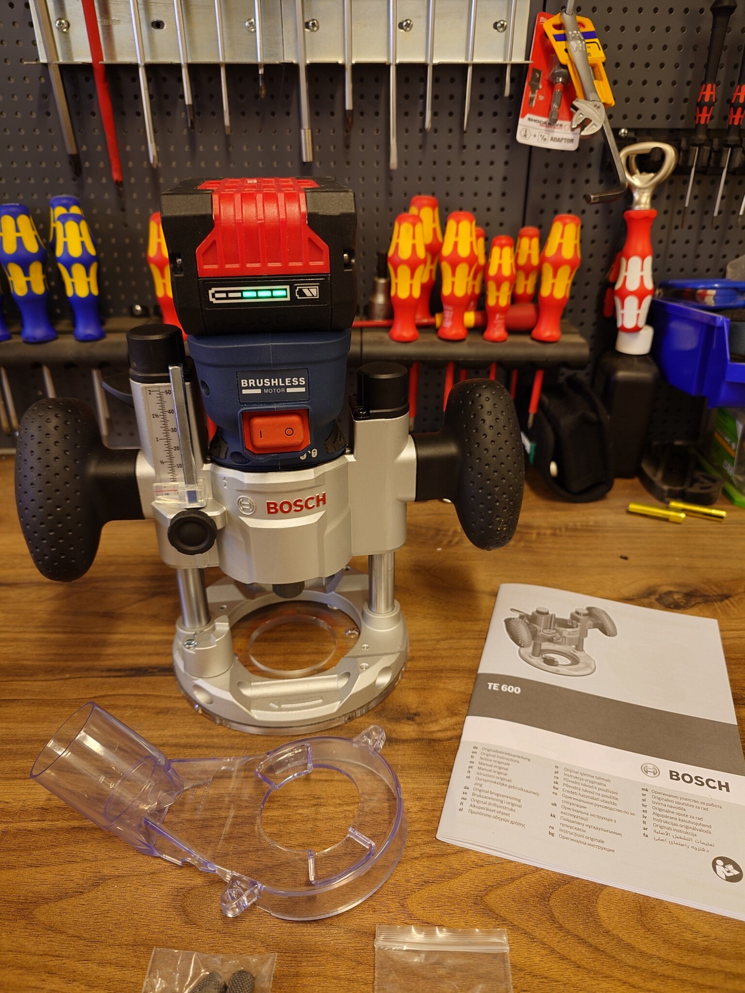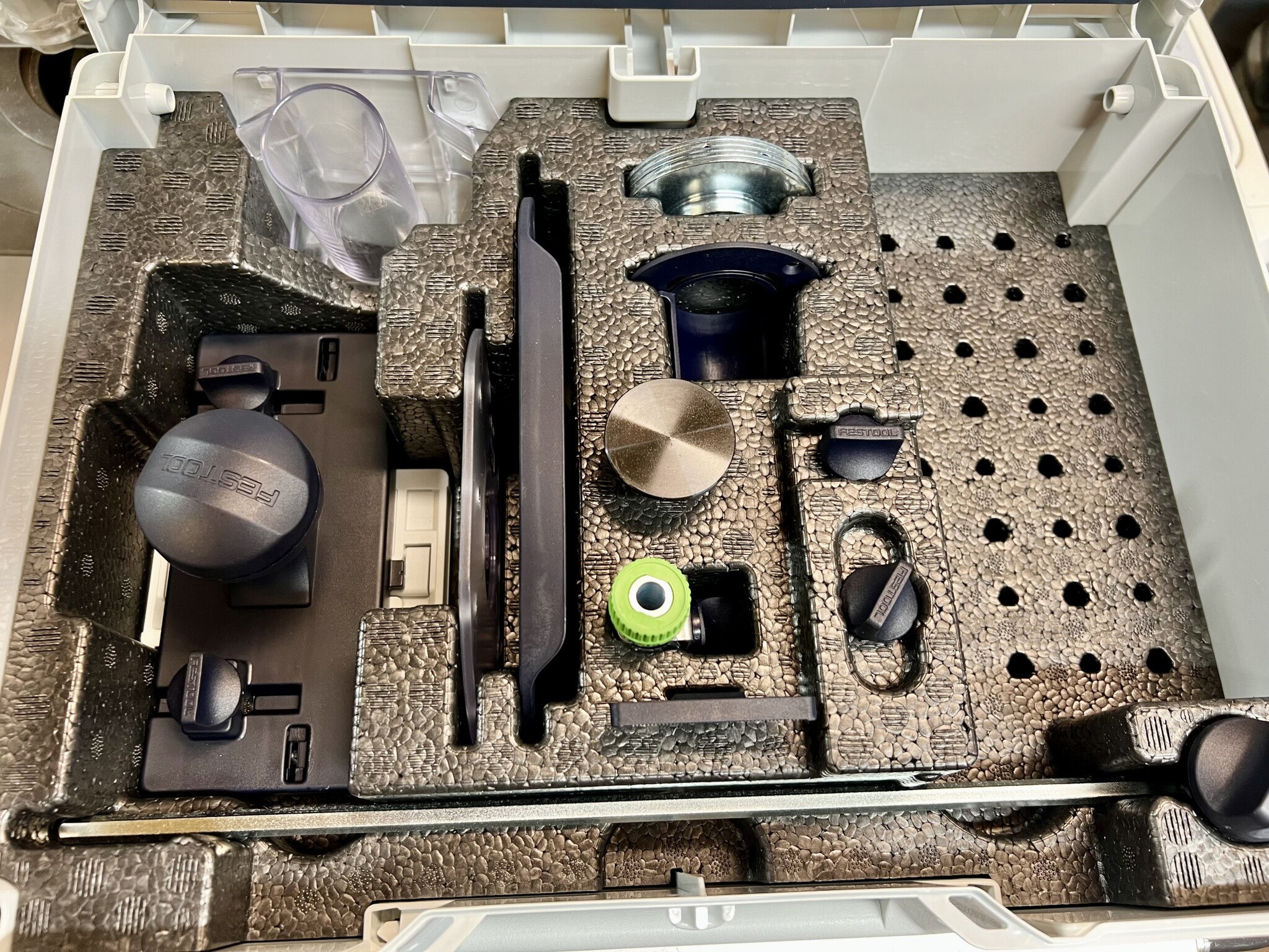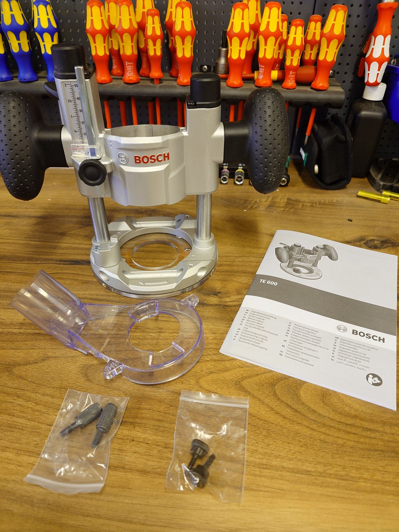 En låda med alla de där trevliga sakerna till fräsen som man egentligen borde ha fått med från början. Förmodligen rejält överprissatt och bara lådan kostar väl som en mellanstor husbil, men med 33% rabatt, och en lampa på köpet, kändes det hanterbart.
