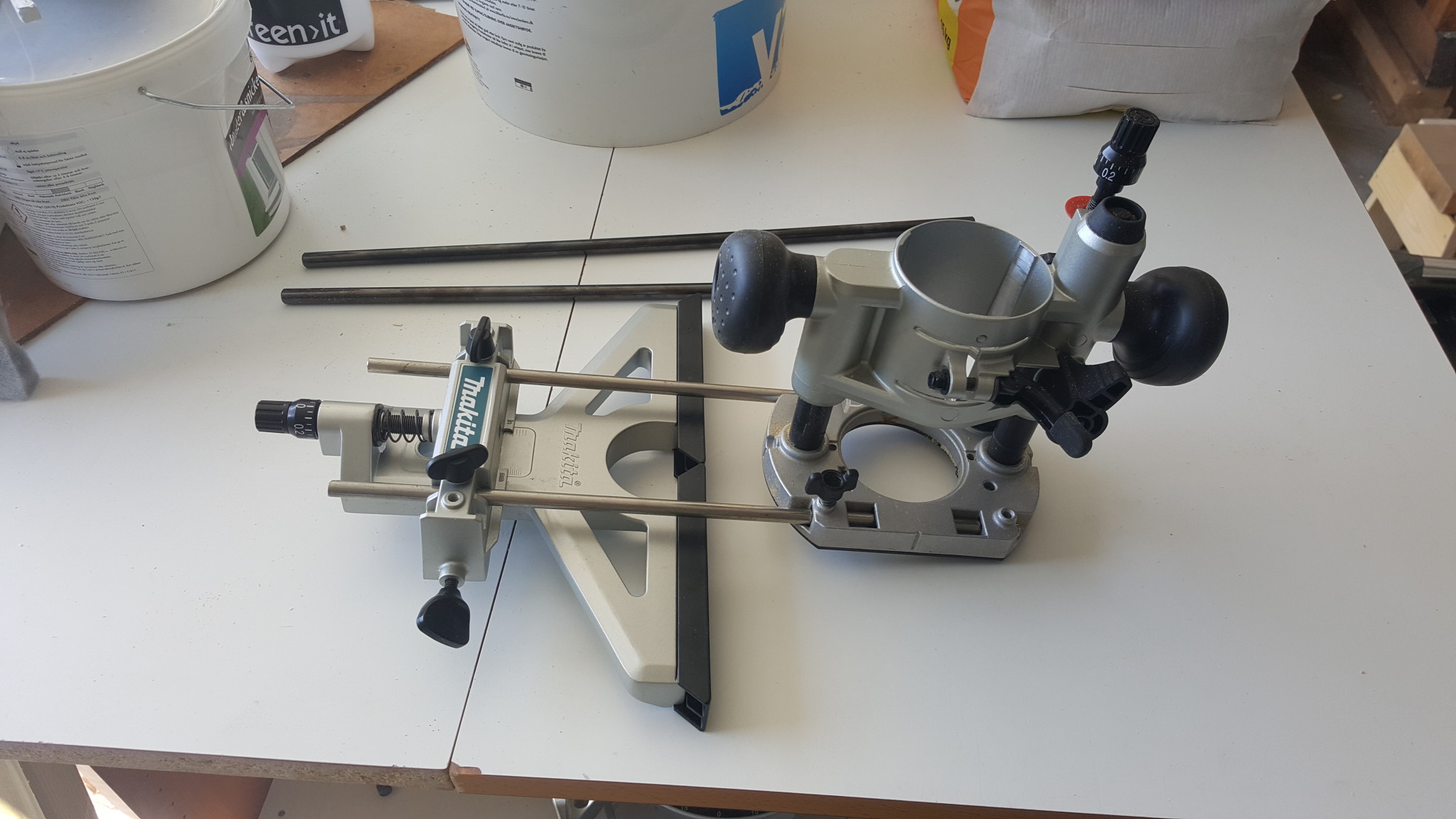 Och köpte en Makita 194935-6, bytte 10mm stängerna till 8mm så passar de även till en Makita RT0700. Nu köpte jag från https://www.svh24.de/makita-parallelanschlag-fuer-rp1800/rp2300c-5680 men det är ungefär halva priset mot en Makita 193312-9 som är det officiella tillbehöret till fräsen.