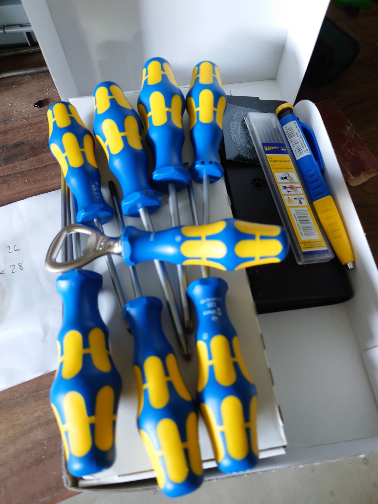 En fin Inca, mest alu så borde inte vara så mycket rost.J JSten skrev:Bandsåg även här (samt bänkslip). Av rosten att döma så har maskinerna stått ett bra tag. Slipen behöver lite hjälp att starta men sen snurrar den fint. Bandsågen är mer osäkert, åtminstone en del rost som ska bort samt klingan och elkabeln behöver bytas. Sen har jag inte kunnat provköra den då det saknas trefasuttag i garaget.