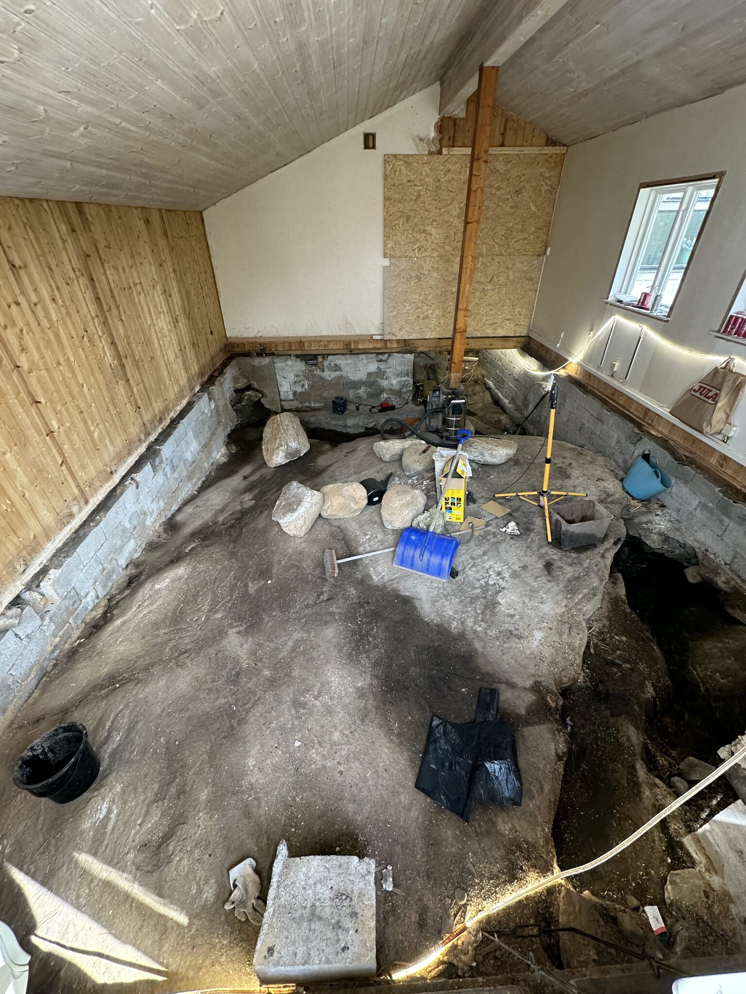Nu har vi grävt ur krypgrunden, gjort rent berget och tagit bort allt gammalt organiskt material. Så grunden är nu betydligt fräschare.( finns fortfarande lite kvar när vi fått ordning på hur vi ska göra med vatten osv )