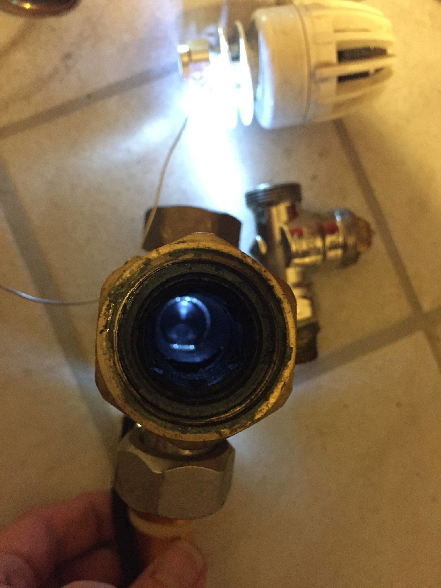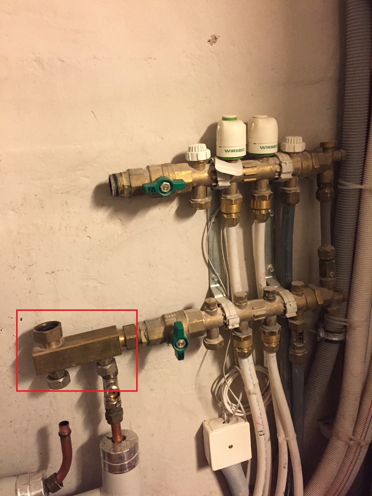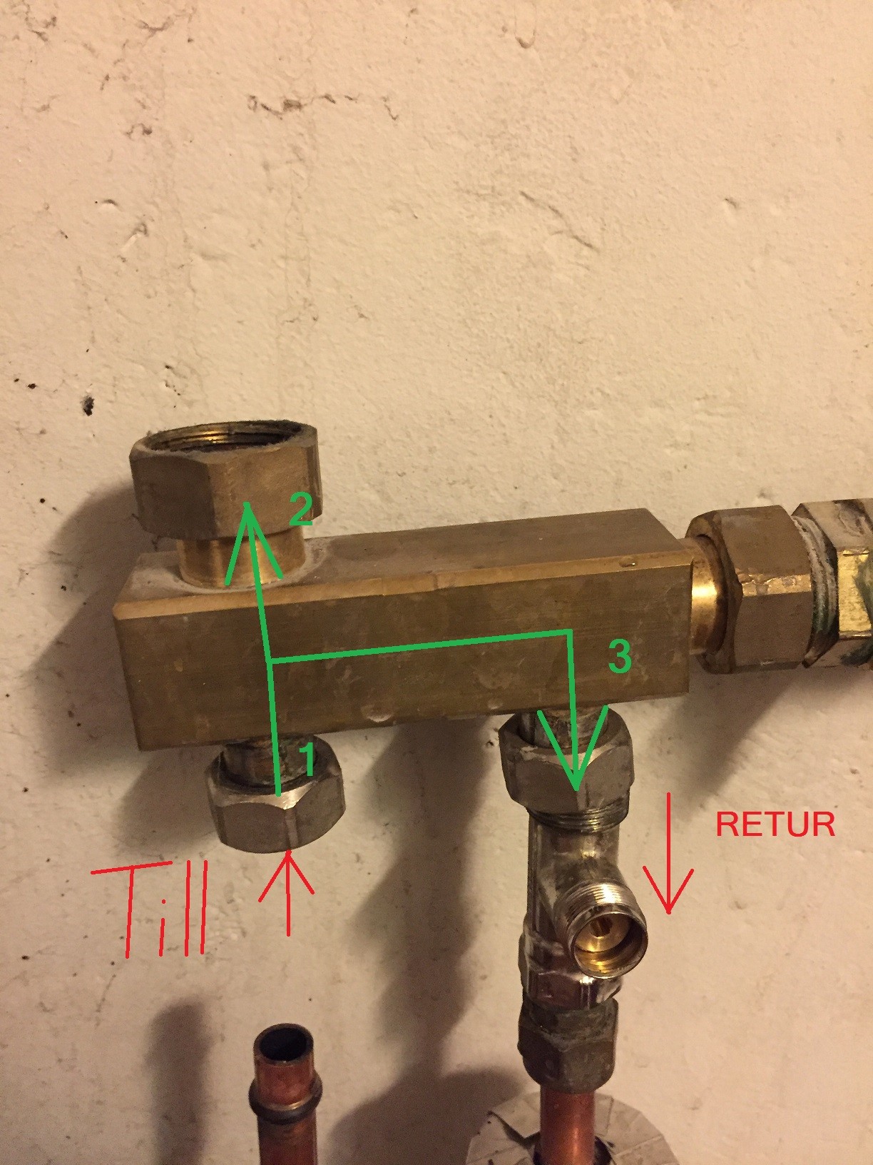 Är den feltillverkad eller saknas det helt enkelt något i den delen. Alternativt ska det vara så och det ska cirkulera och det ska släppas in mer varmt vatten av termostaten som sitter vid ordet "Till" (som verkar var ok, helt öppen) men att det inte fungerar som det är tänkt av någon anledning. (Obs. Har stängt ventilen på returen för att inte tömma ut allt vatten).