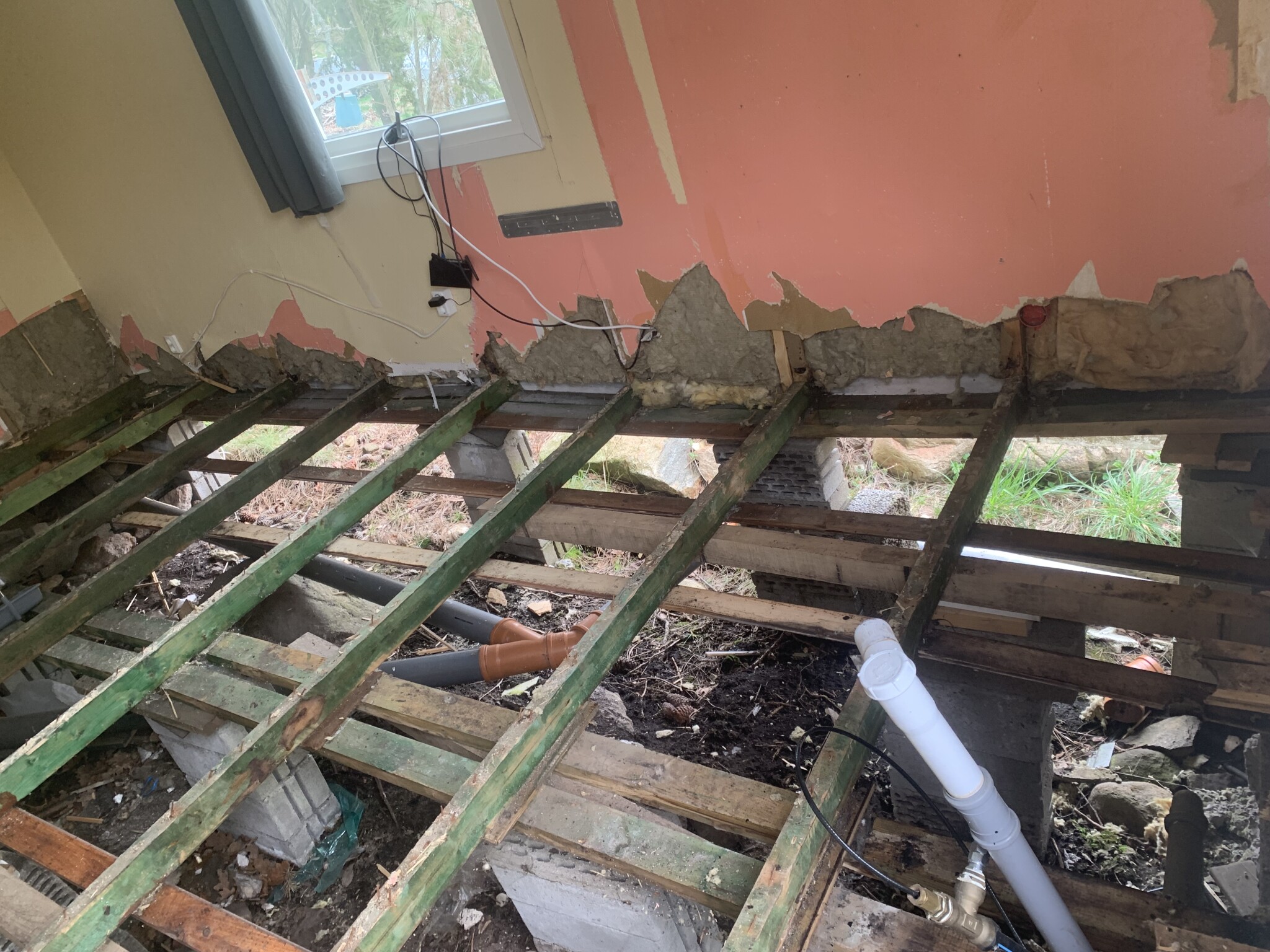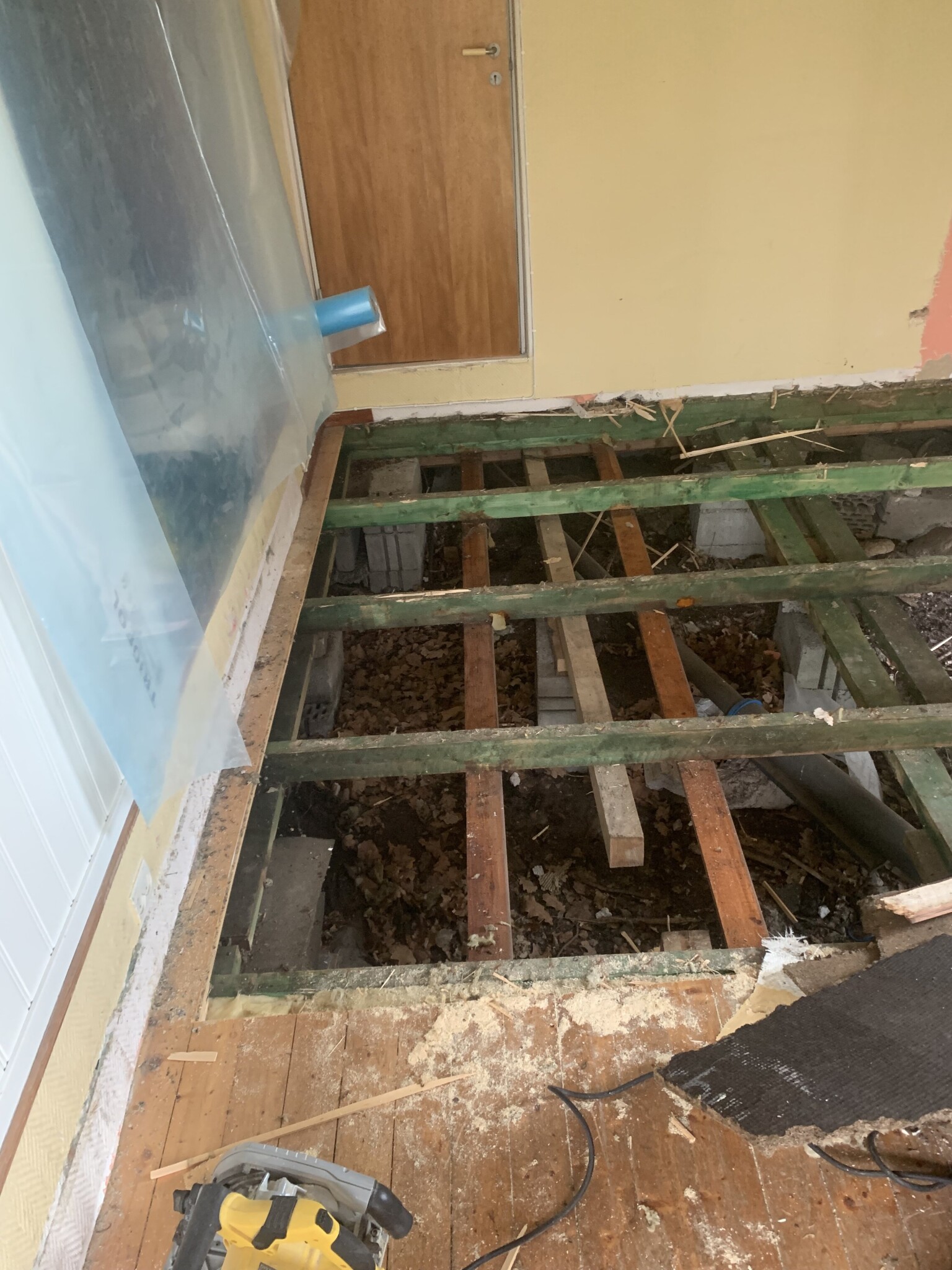 Det är ett hus byggt någongång på 80 talet och när jag väl började riva upp golvet så visar det sig att det inte är så bra gjort😅