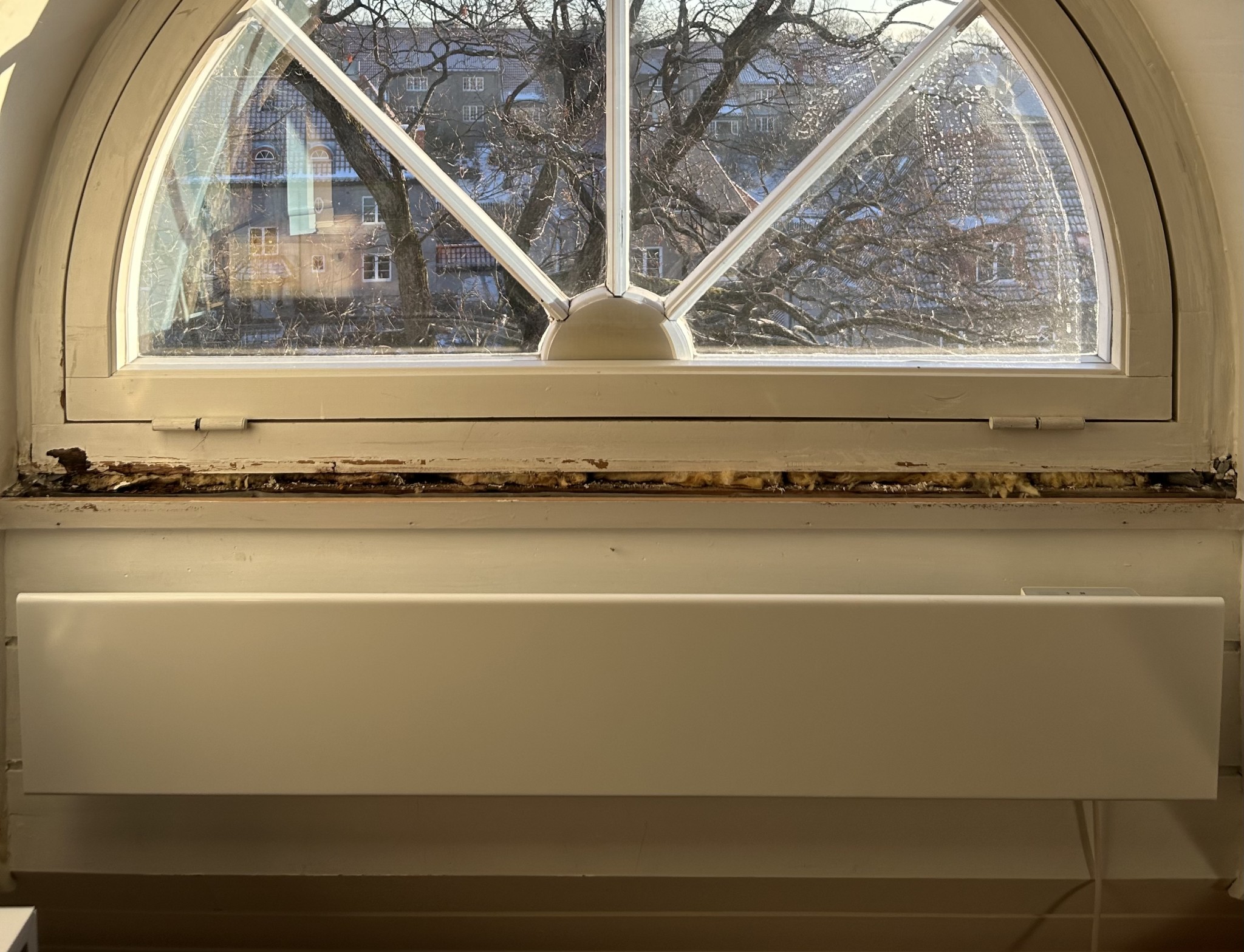Jag tog loss fönsterbrädan kring ett halvmåneformat fönster och ser att den verkar vara väldigt dåligt fodrad. Jag undrar hur jag fixar till detta på bästa sätt?