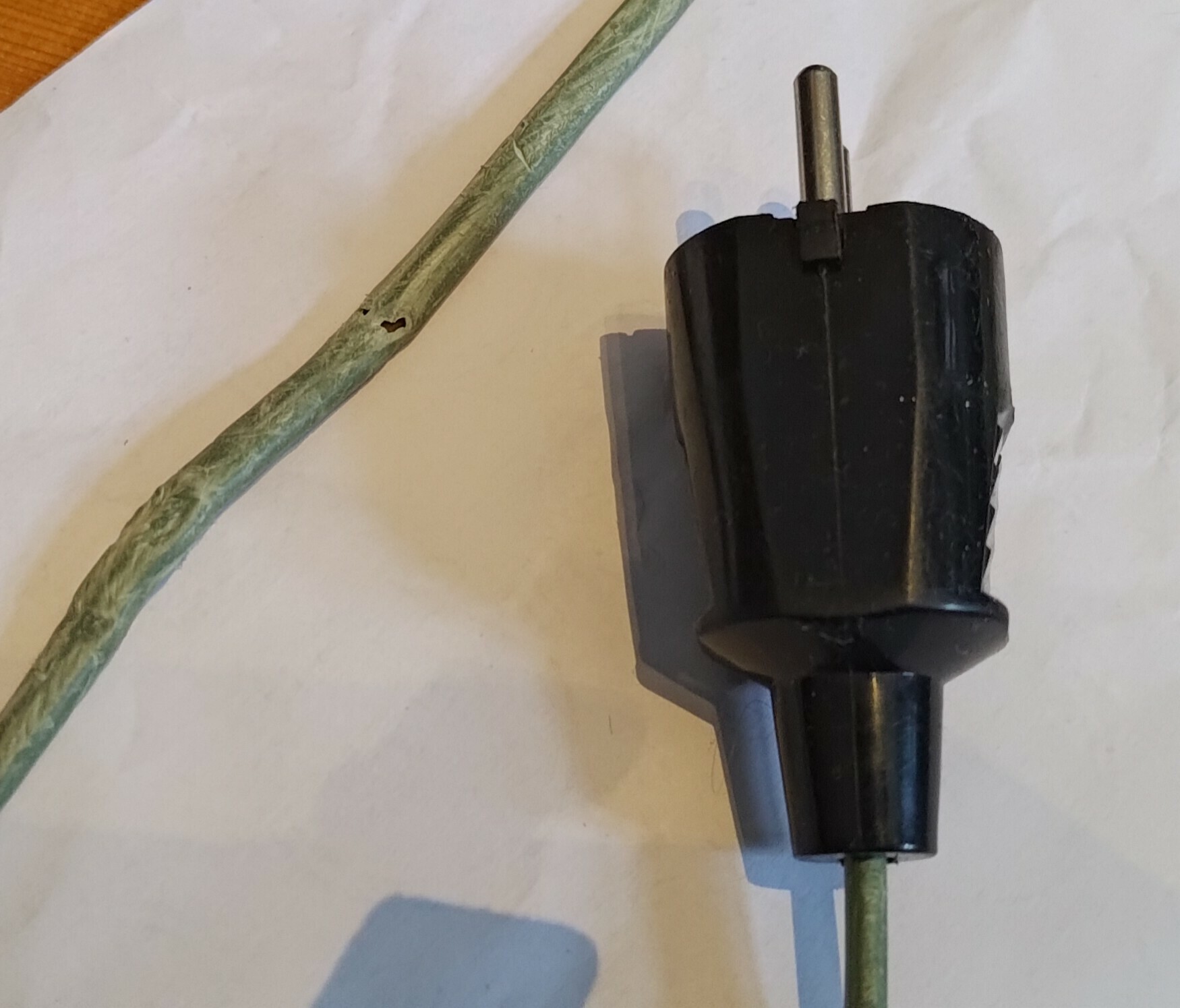 På maskinen så står det att den är gjord till 70 procent av återvunnen plast så det är kanske en sån kabel.