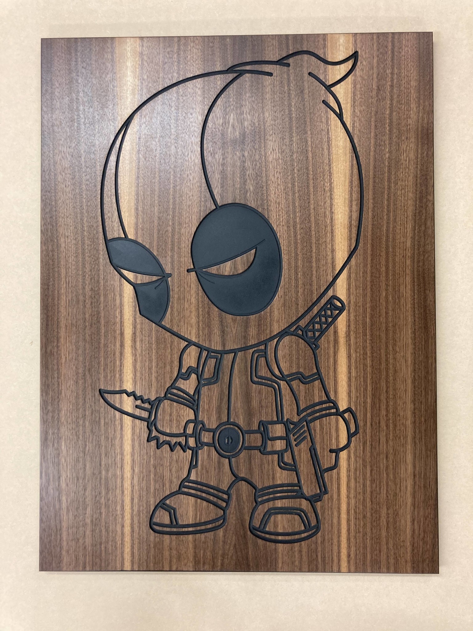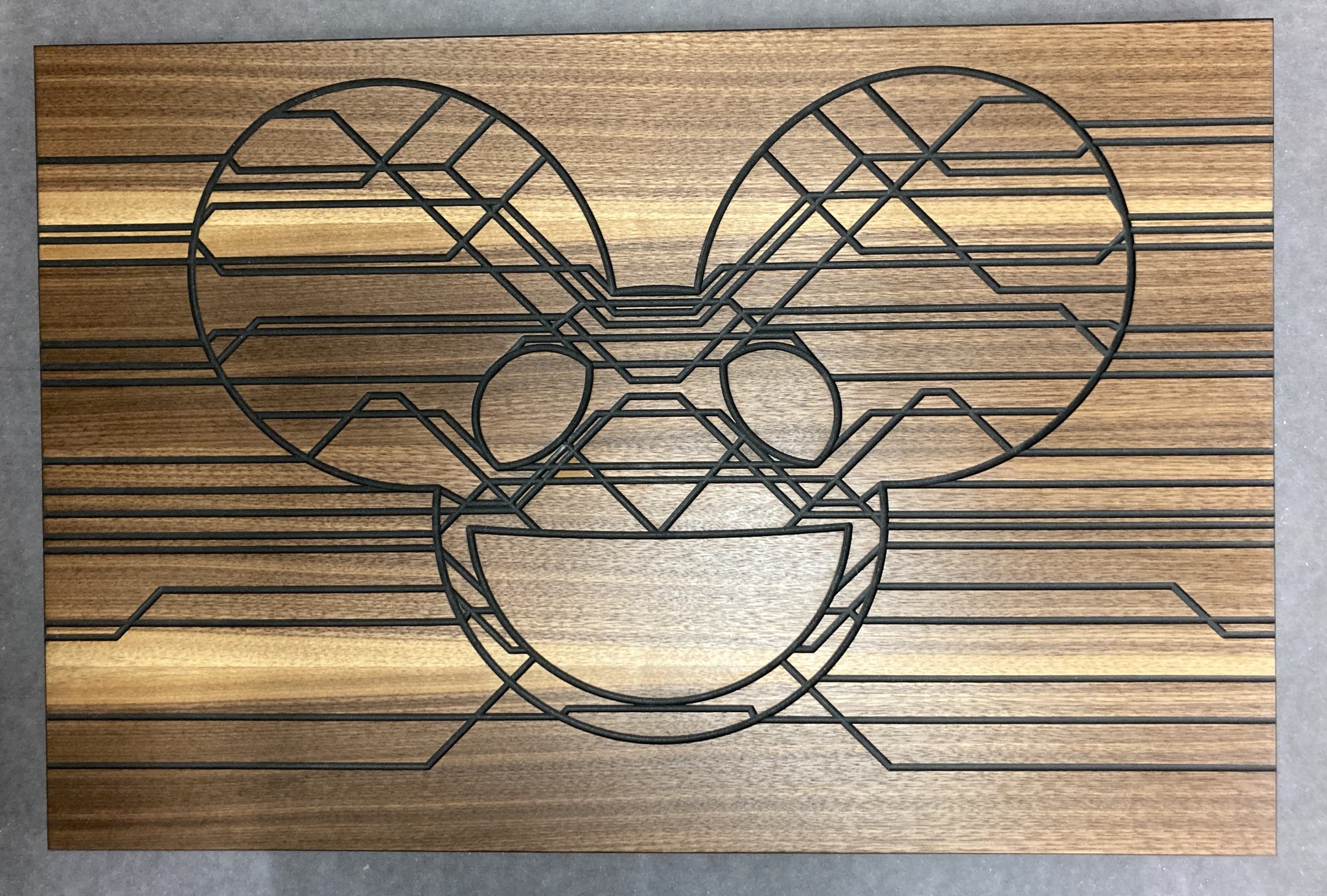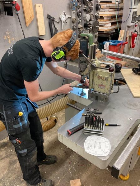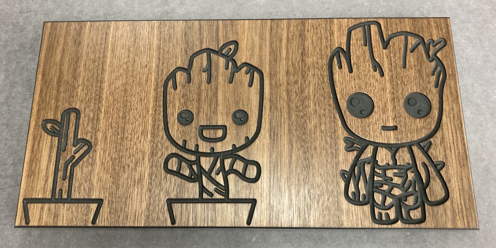 Vi har ingen CNC. Men lärlings-Jesper lobbar hårt för att vi ska skaffa en! Han går CNC-kurs i skolan och tillverkade bland annat dessa fina tavlor i valchromat och valnötsfaner, behandlade med Osmo hårdvaxolja. Riktigt impad är jag.