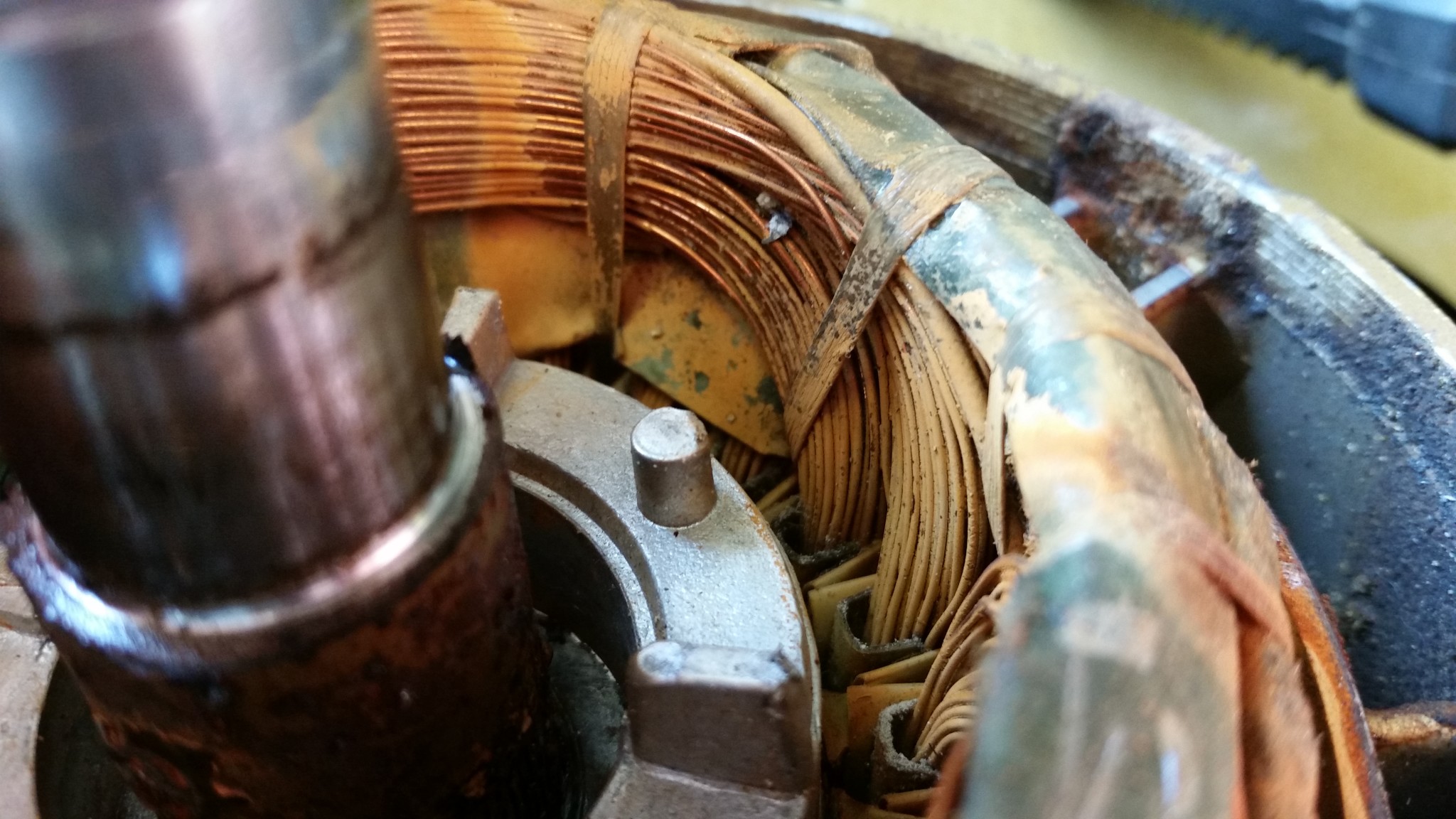 Vilka kontaktytor menar du? Det är väl bara i lagerringarna som det skall vara kontakt mellan delar i rörelse. Jag skulle slipa bort rosten för hand med fint slippapper. På statorn gäller det då att hålla koll på pappret så att man absolut inte kommer åt lindningarna. Om det sedan blir lite rost kvar spelar ingen roll. Det viktiga är att inte rosten på rotorn skrapar i rosten på statorn.