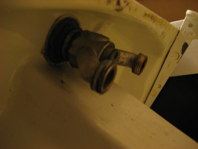 Problemet är att undertill så sitter någon form av fast anslutning för rören som inte riktigt vill lossna, se bild.