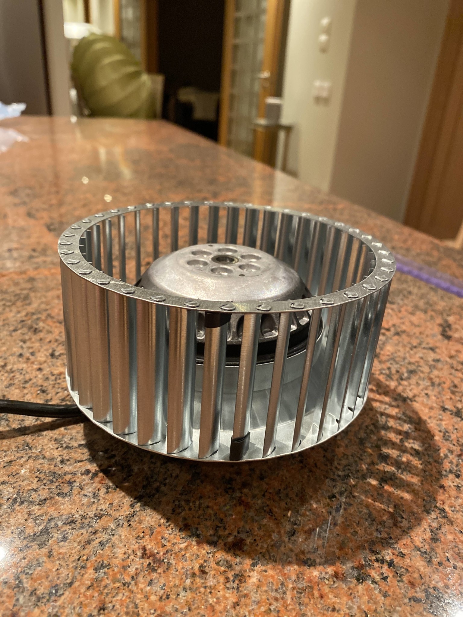 Efter lång väntan kunde jag idag hämta ut den beställda kanalfläkten som jag köpt som reservdel. Jag ser direkt att den är ganska rejält skev. Så ska det väl inte vara? Den kommer väl att låta mer än nödvändigt och slita lagren snabbare? Vad säger expertisen?