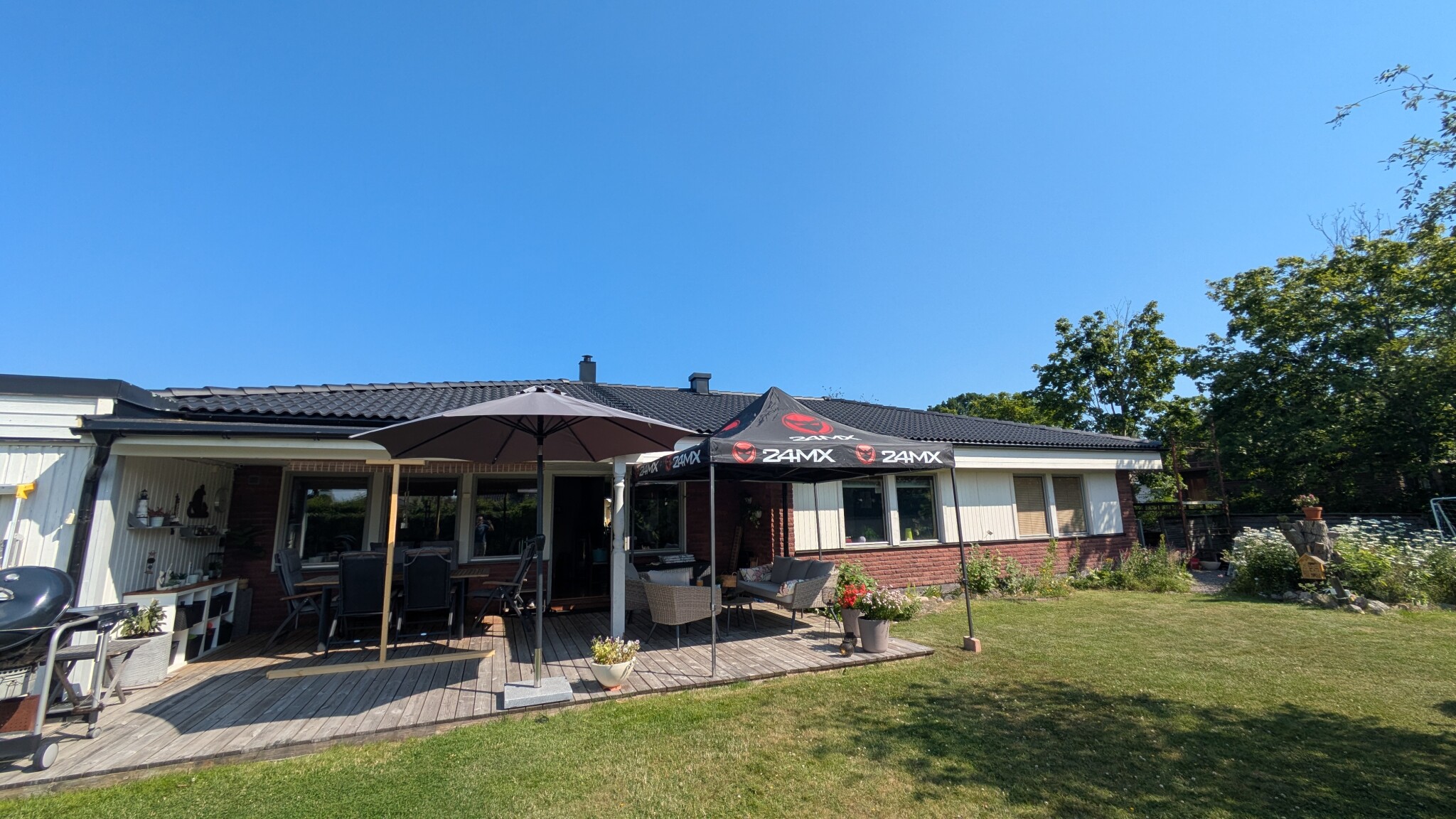 Sitter också och njuter i Pergolan medans grillen värms upp. Sällskapet (förutom frugan) är Bitter Britta från Klackabacken. Lite bitter men inte påtagligt. Korta milda smaker, fungerar fint kall som törstsläckare. Men inget upphetsande.