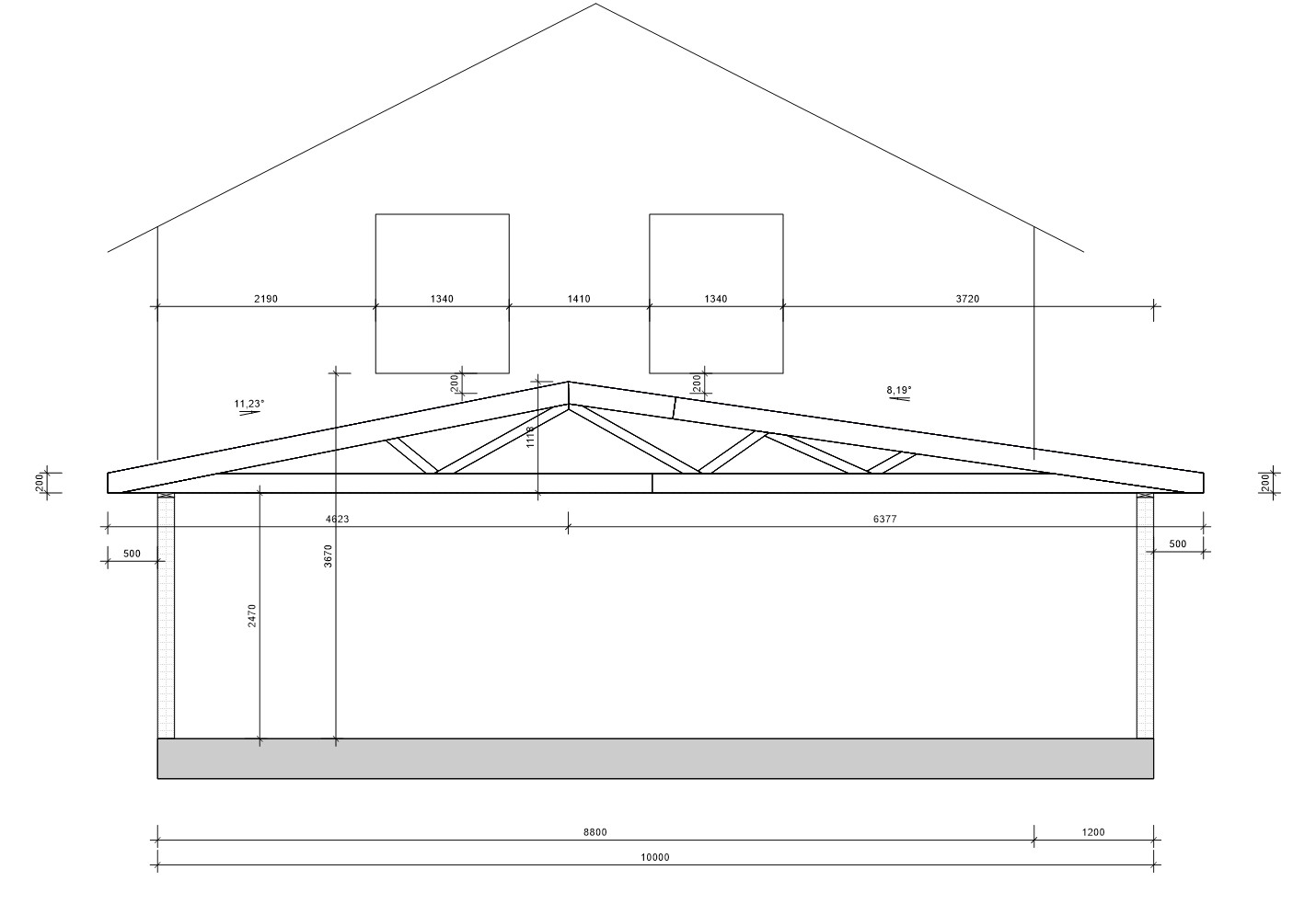 Om det är så ni vill ha takstolen, tänker mest på utsticket och takfotshöjd, även vilken höjd det blir på stomme och önskad öppning på garageporten. H-Balken kommer ju bli ganska ordentlig med den spännvidden.