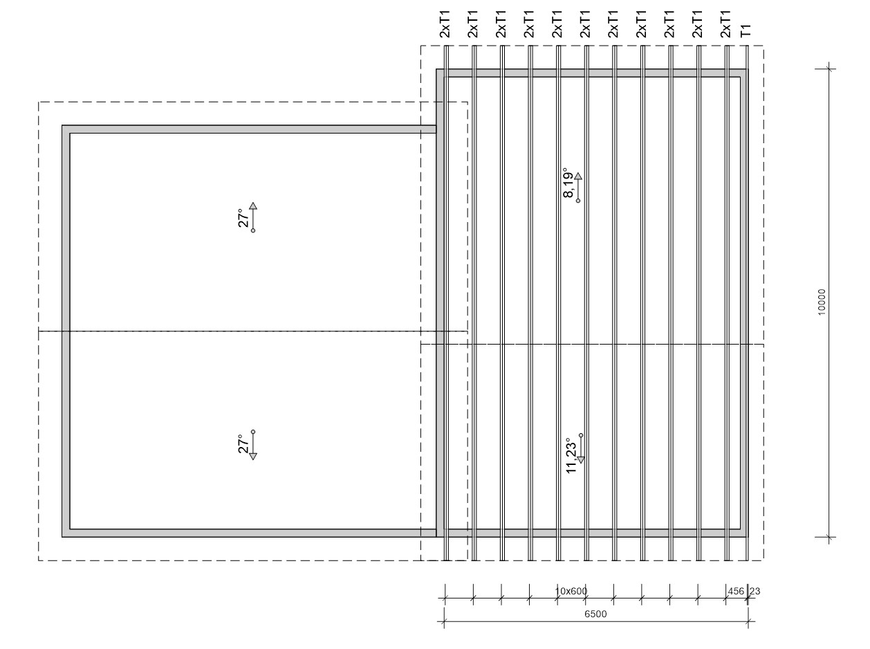 Vilket medför att vi får dubbla takstolar på ca c/c 600 (snabbt dimensionerat):