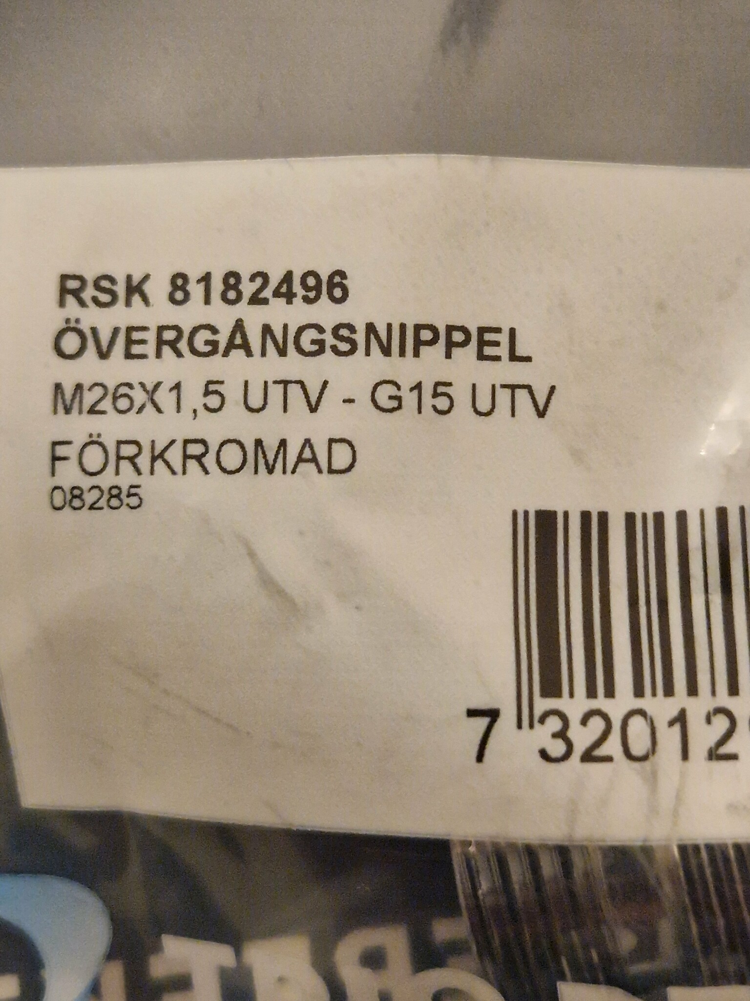 Blandaren har lekande mutter M26*1.5 och i väggen kommer jag ha förlägningsrör G15.
