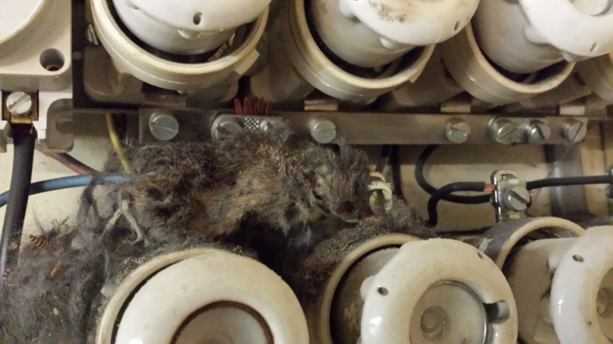 Efter några månader så började det brinna under diskbänken så att brandkåren fick rycka ut. Det visade sig att råttor hade gnagt av aluminiumfolien runt diskmaskinen och när de sprang med folien inuti el-rören så blev det kortslutning inuti en kopplingsdosa. Det hade kunnat sluta riktigt illa.