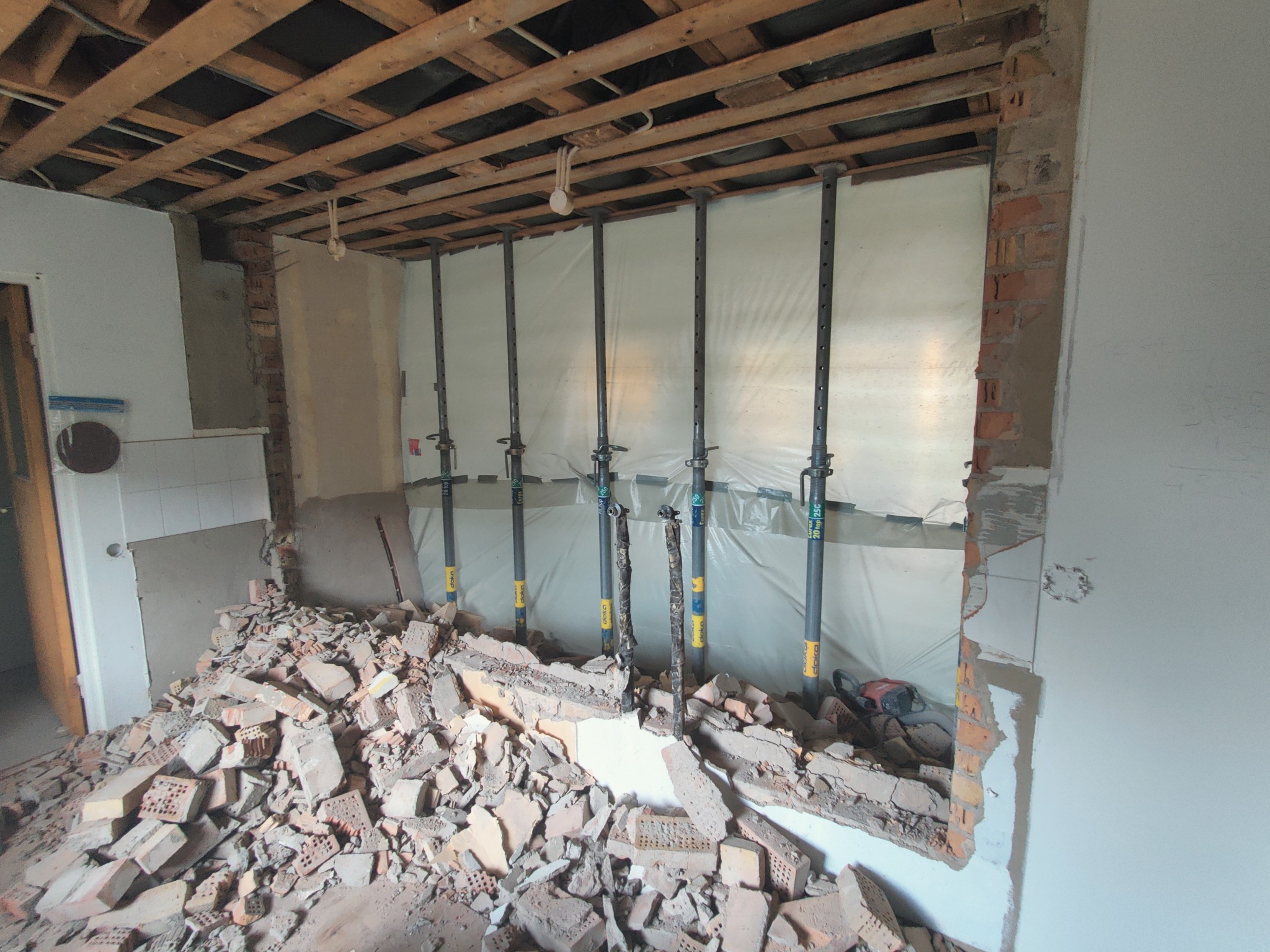 Ett exempel är att den blivande kaminen (där jag murat med ytong) är 120 cm bred. Pga detta har jag justerat båda öppningarna så att även de är 120 cm för att få en helhet i det hela.