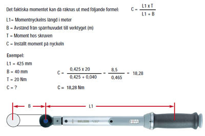 Korrigerade mitt tidigare inlägg om att det blir 0 i extra moment om man har en förlängning i 90 vinkel. Har man en rak förlängning så blir inställningen på moment nyckeln mindre.Tiger79 skrev: