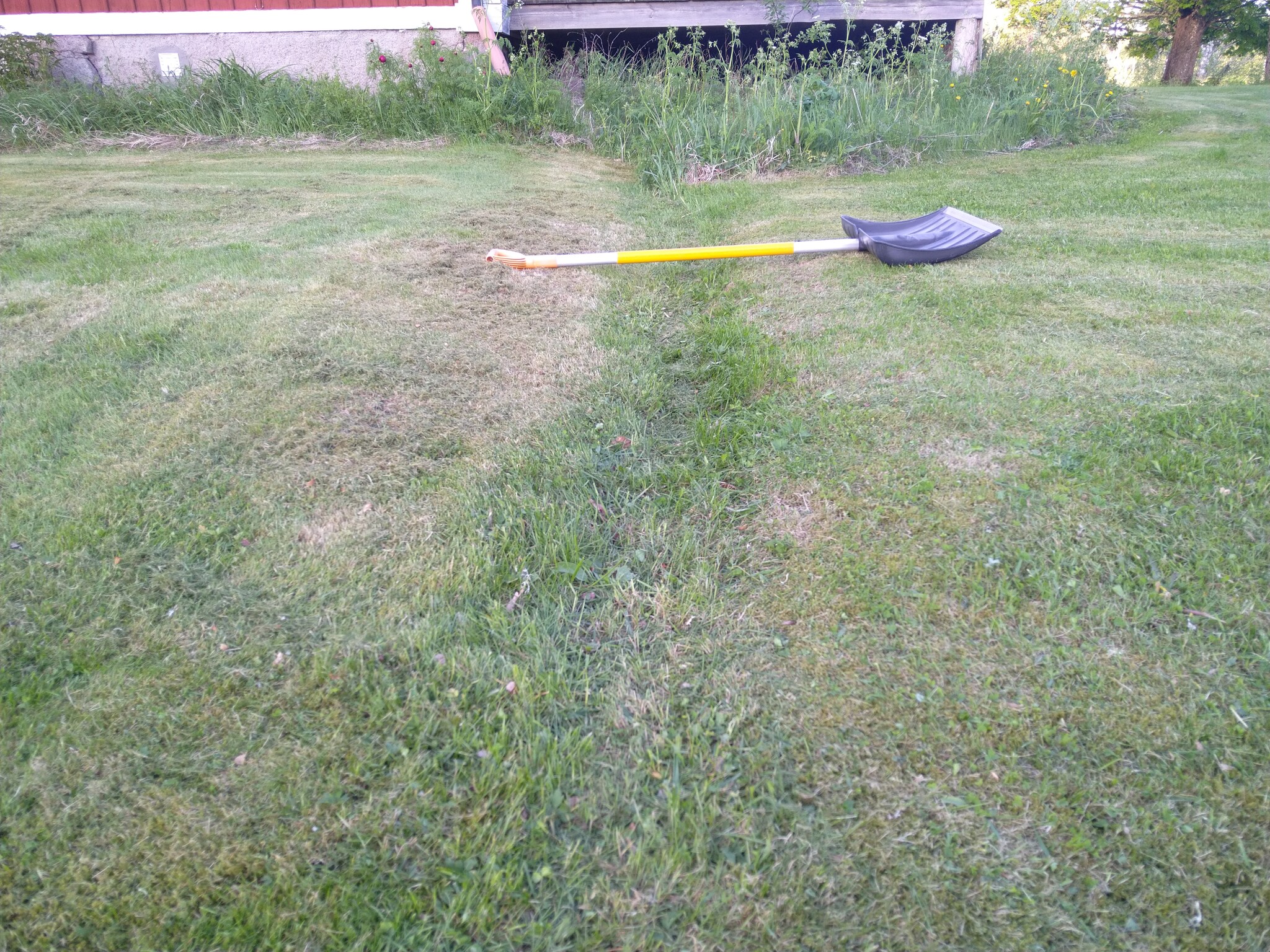Borde jag inte ha antydan till två diken, eller iaf en bredare försänkning i gräsmattan eller blir det ett så tydligt smalt dike även av två slangar?