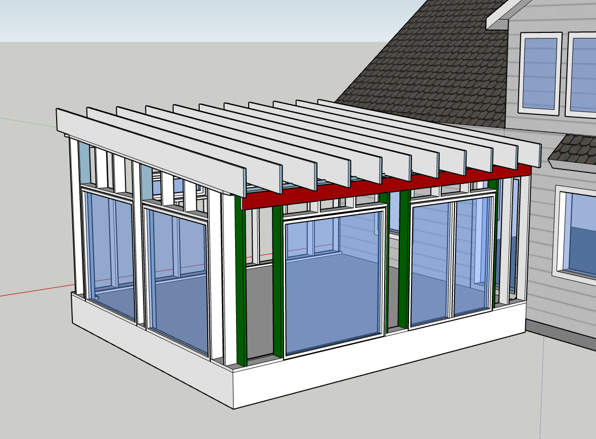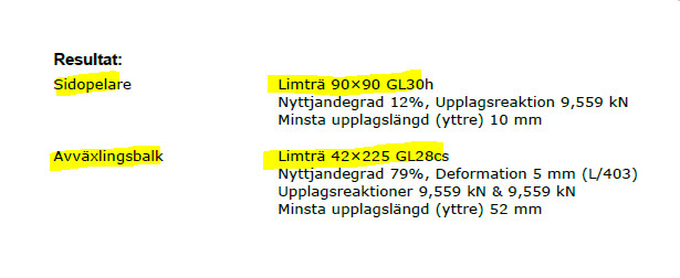 Vi ska bygga ut vårt hus enligt ritning nedan. När jag räknar på limträbalken över fönstren så ska det vara limträ 42x225. Samtidigt anges att sidopelarna ska vara limträ 90x90, dock är bara nyttjandegraden 12% på dessa. Borde vi inte klara oss med vanlig regel 45x195? Se grönmarkerade reglar på bild nedan.