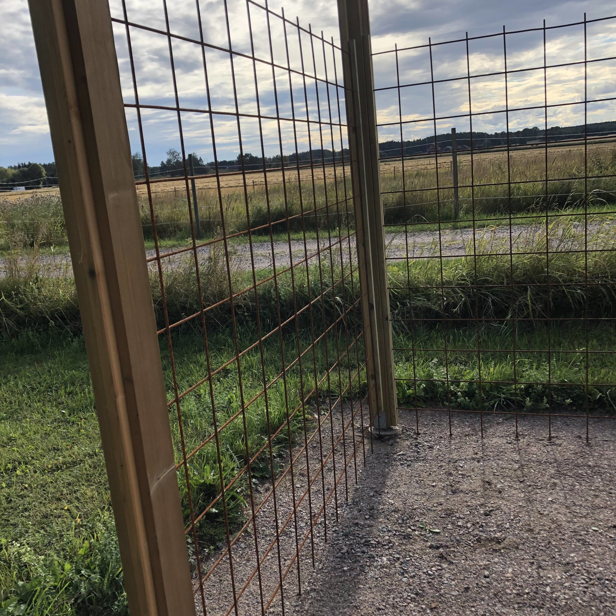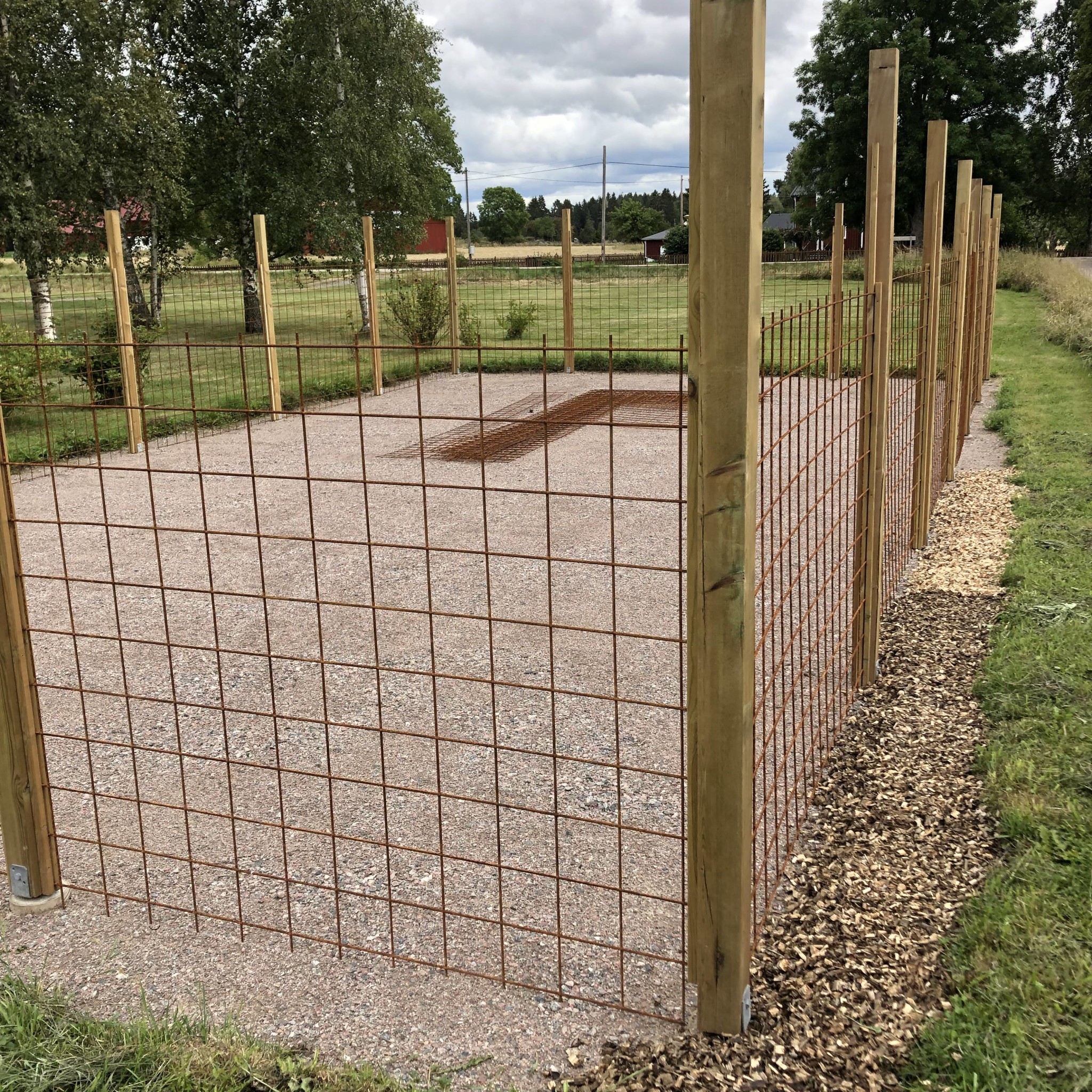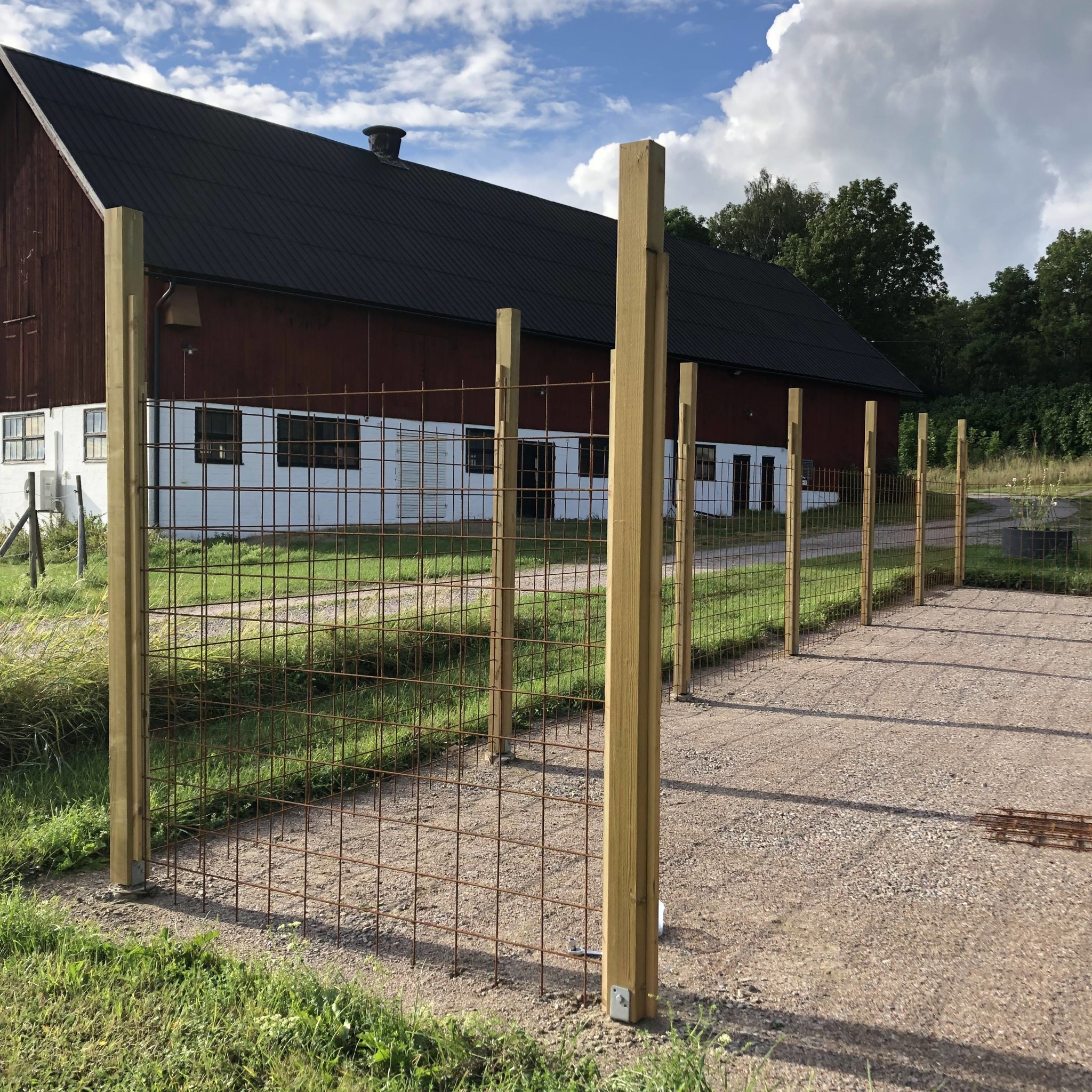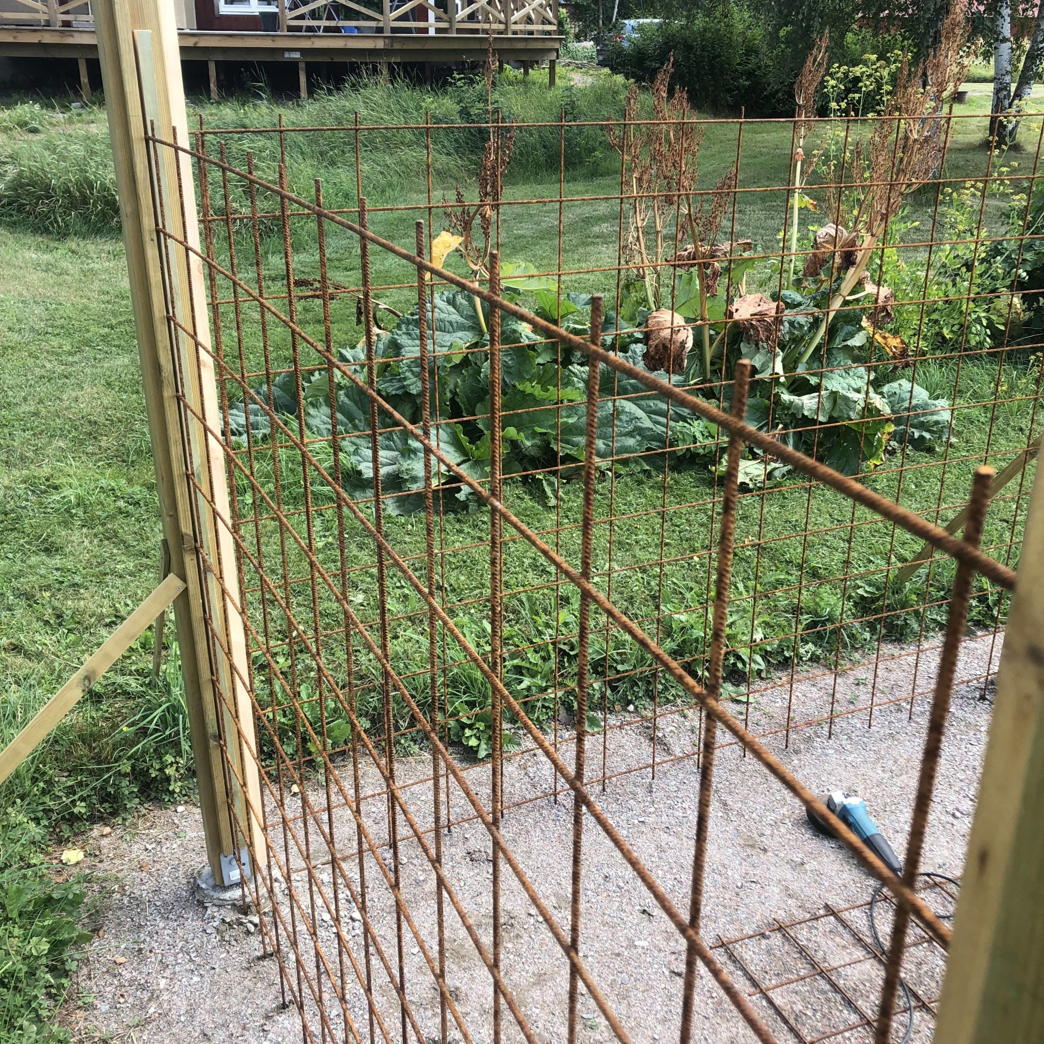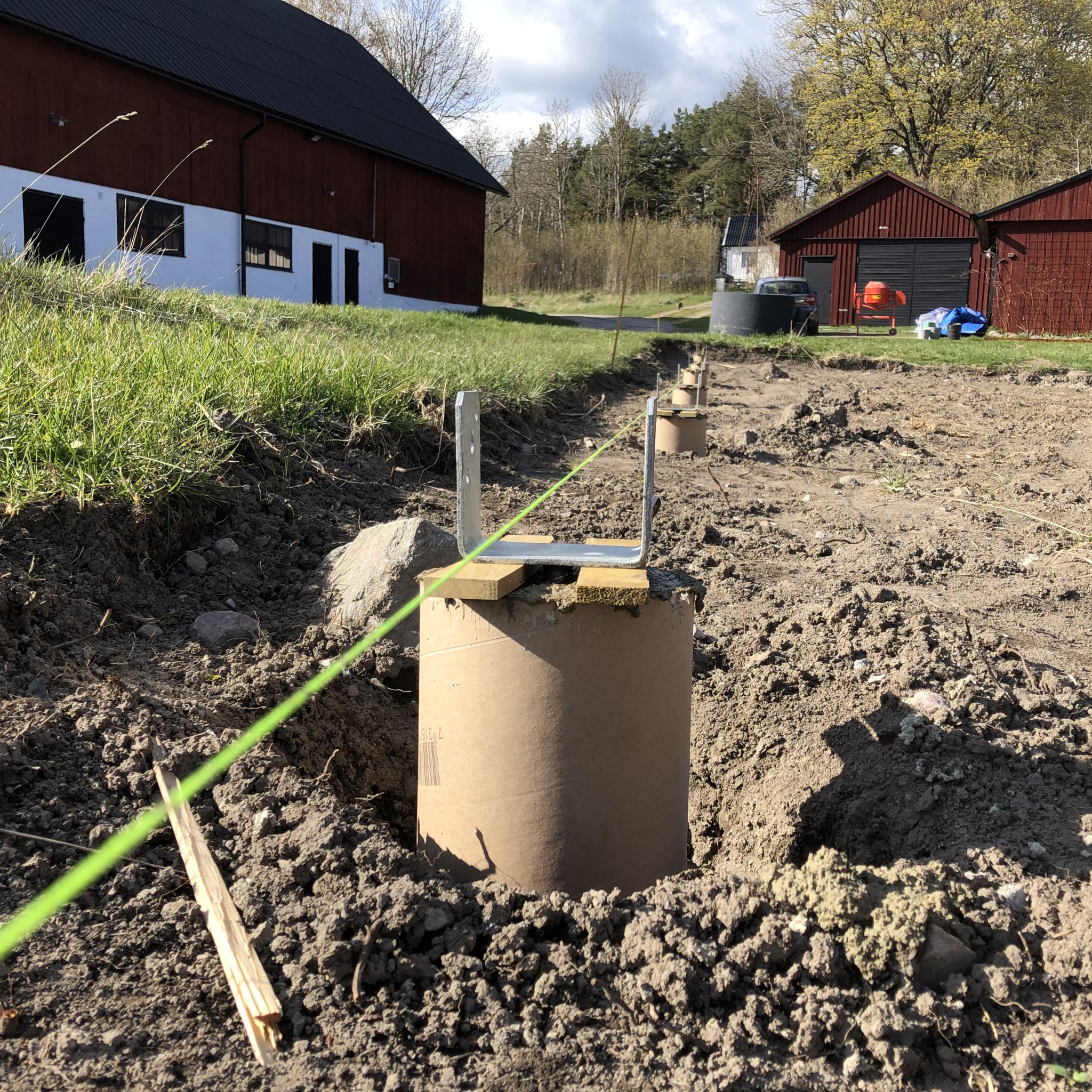 En kompis har tjatat på mig att det inte behöver gjutas utan räcker med stolpspjut, men när jag ser din konstruktion känns den ju betydligt stabilare. Armeringsnäten väger ju en del. Min är nog någon meter kortare på varje ledd, men det här ser väldigt imponerande ut.